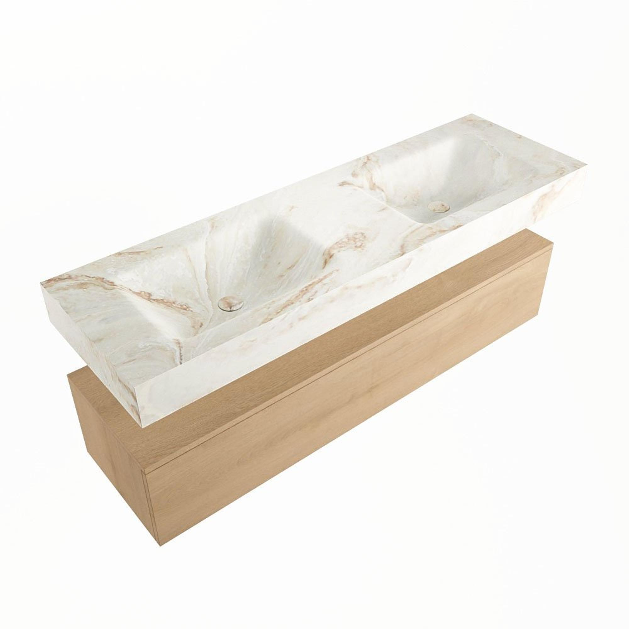 MONDIAZ ALAN - DLUX Badkamermeubelset - 150cm - onderkast - Washed Oak - 1 lade - vrijhangende wastafel - 2 wasbakken - 0 kraangaten - Frappe