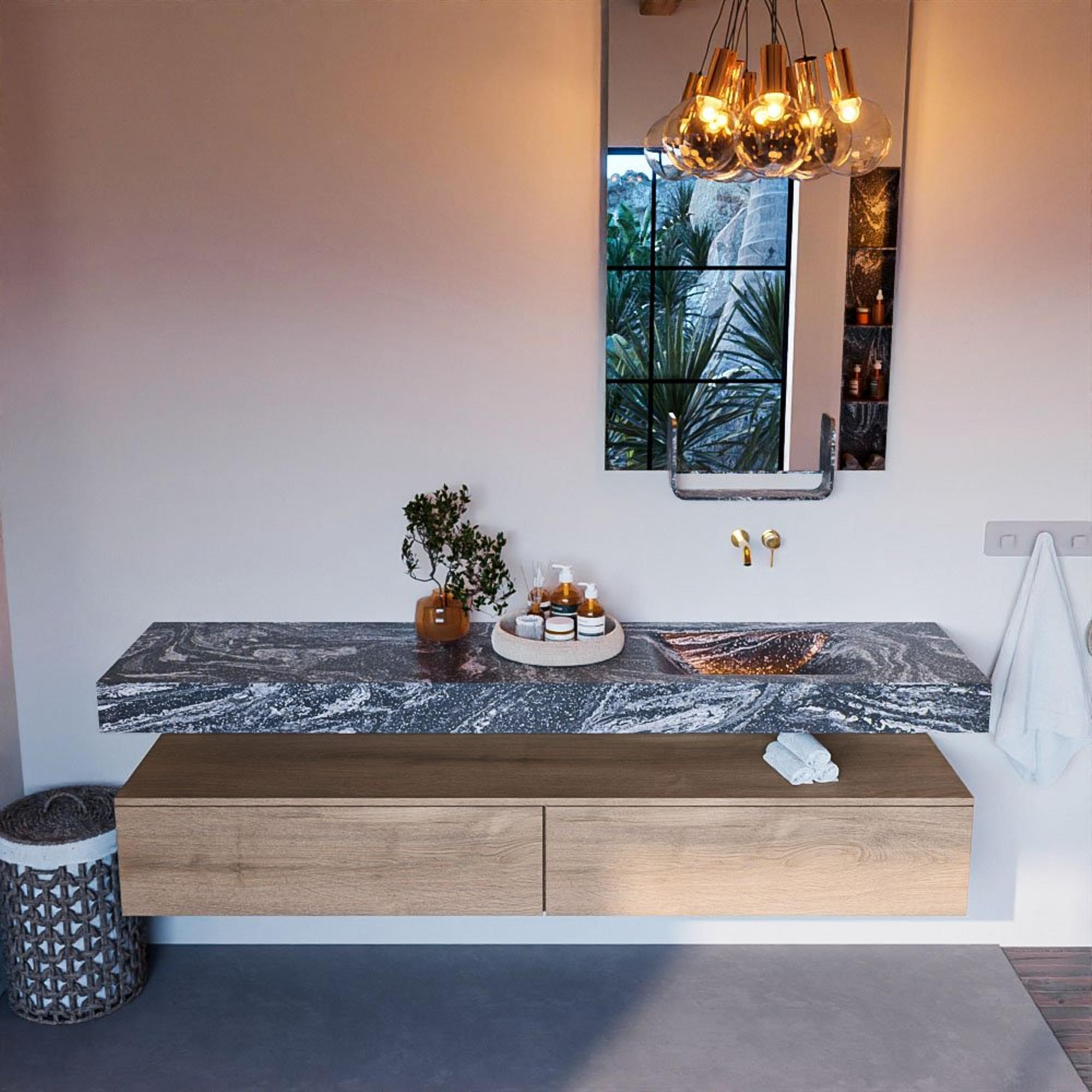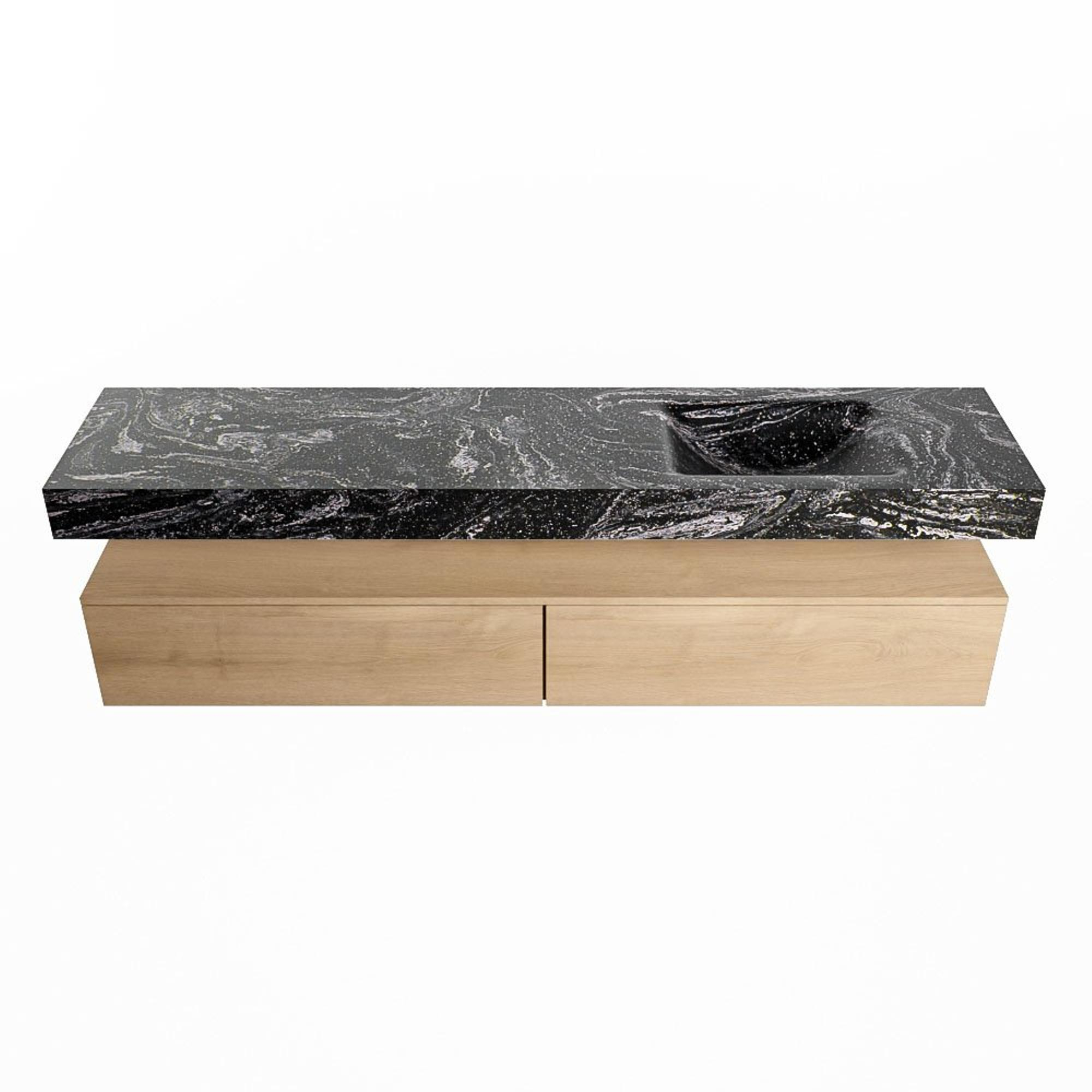 MONDIAZ ALAN - DLUX Badkamermeubelset - 200cm - onderkast - Washed Oak - 2 lades - vrijhangende wastafel - wasbak rechts - 0 kraangaten - Lava