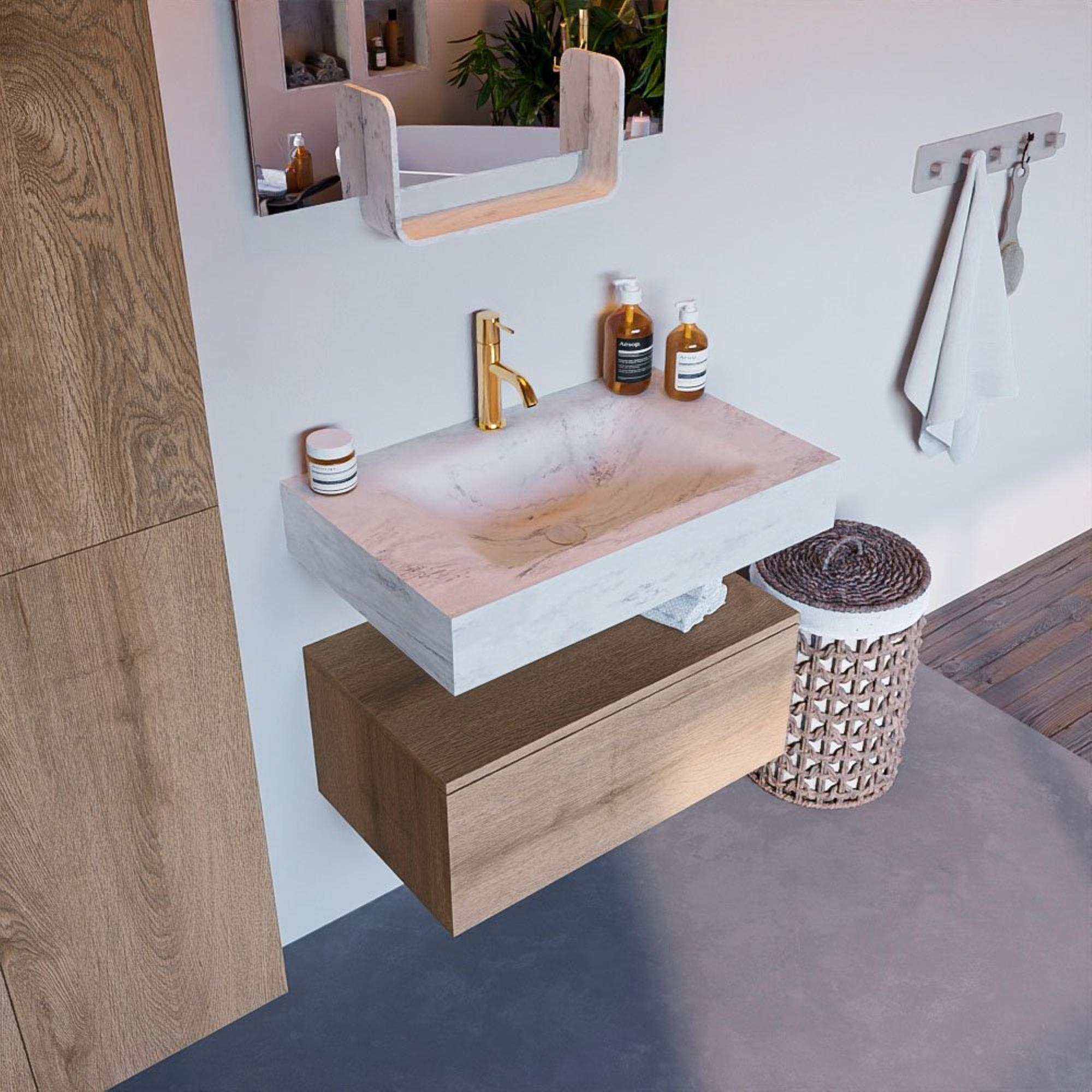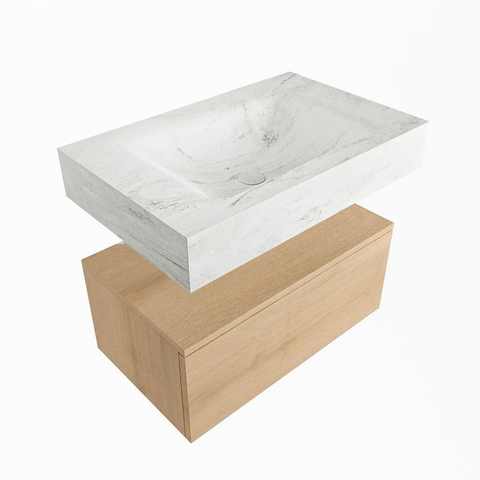 MONDIAZ ALAN - DLUX Badkamermeubelset - 70cm - onderkast - Washed Oak - 1 lade - vrijhangende wastafel - wasbak midden - 1 kraangat - Opalo