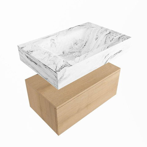 MONDIAZ ALAN - DLUX Badkamermeubelset - 70cm - onderkast - Washed Oak - 1 lade - vrijhangende wastafel - wasbak midden - 0 kraangaten - Glace