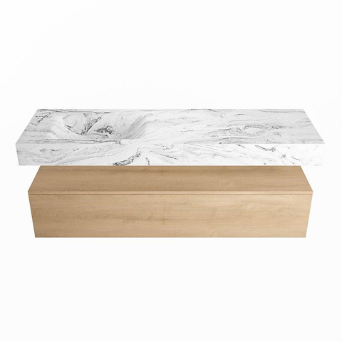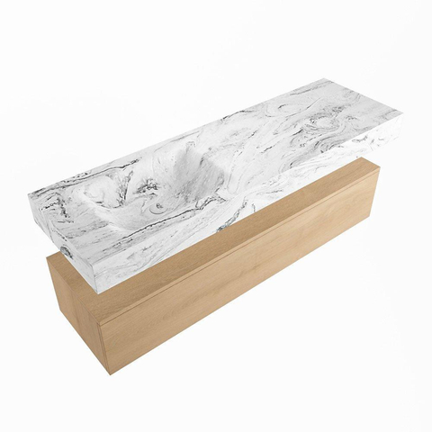 MONDIAZ ALAN - DLUX Badkamermeubelset - 150cm - onderkast - Washed Oak - 1 lade - vrijhangende wastafel - wasbak links - 0 kraangaten - Glace