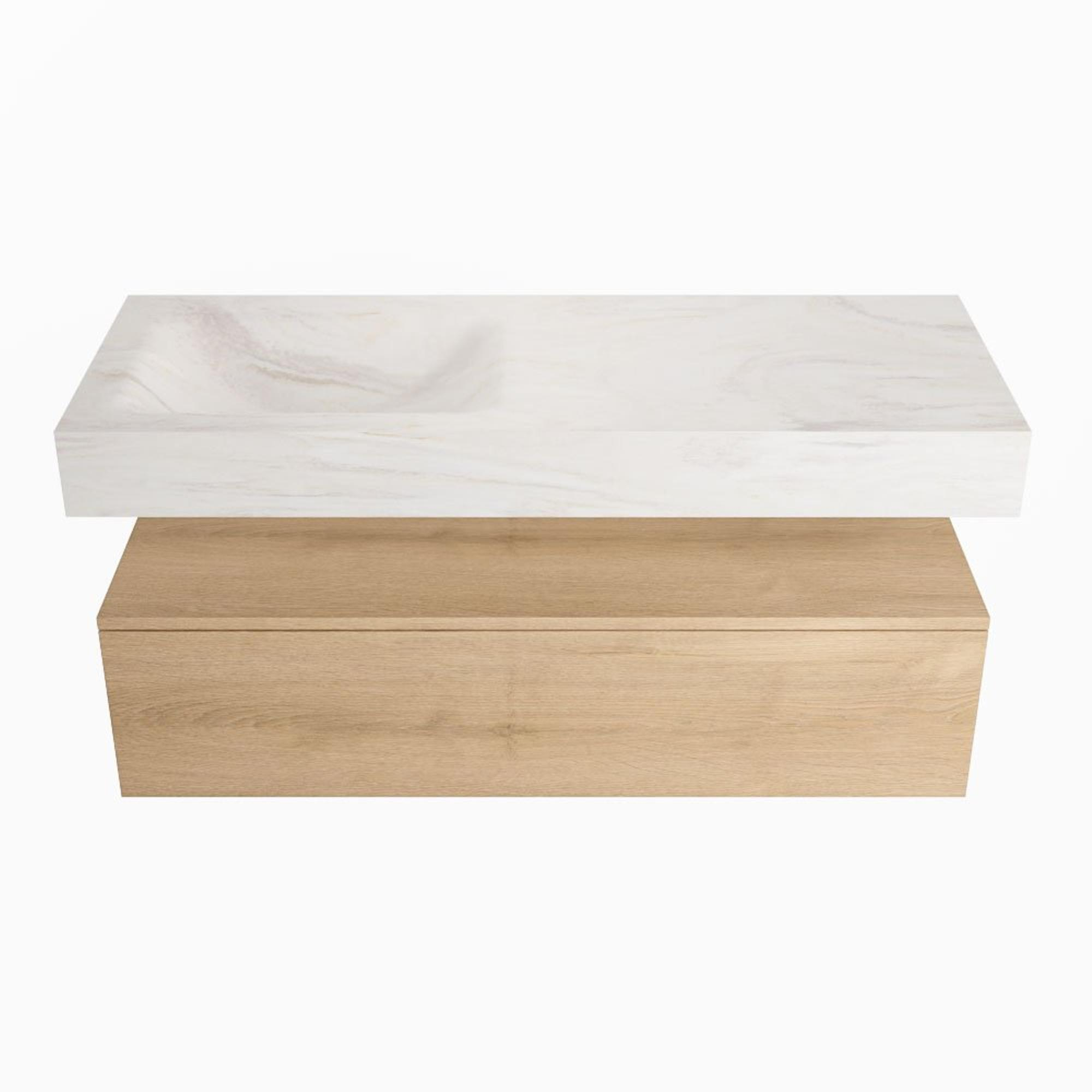 MONDIAZ ALAN - DLUX Badkamermeubelset - 120cm - onderkast - Washed Oak - 1 lade - vrijhangende wastafel - wasbak links - 0 kraangaten - Ostra