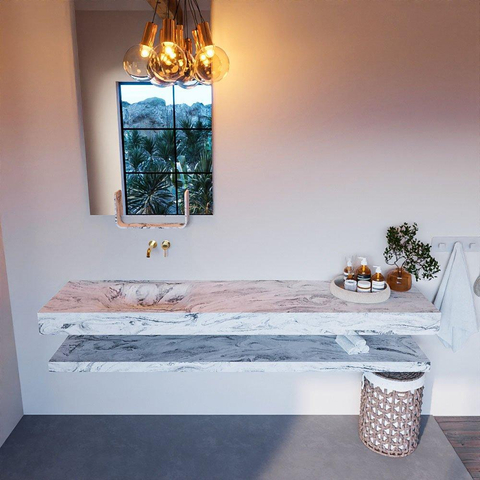 Dit badkamermeubelset is niet alleen mooi, maar ook zeer functioneel. Met een lengte van 200cm is er voldoende ruimte voor al je badkamerbenodigdheden. De vrijhangende wastafel met de wasbak aan de linkerkant zorgt voor een ergonomische indeling en maakt efficiënt gebruik van de ruimte. Bovendien zijn er 0 kraangaten, waardoor je zelf de kraan naar wens kunt plaatsen.