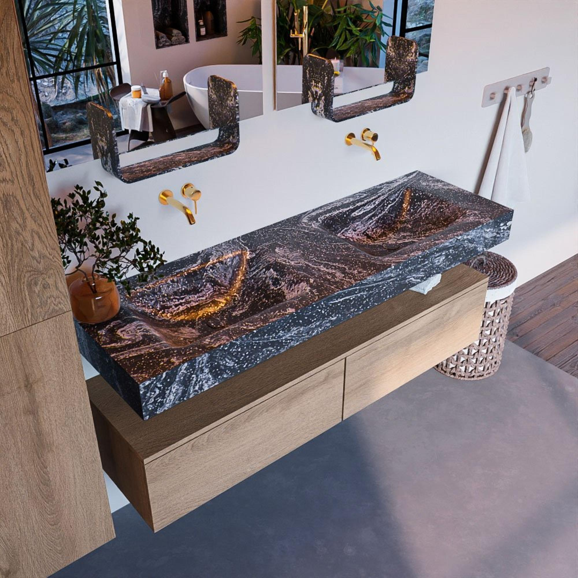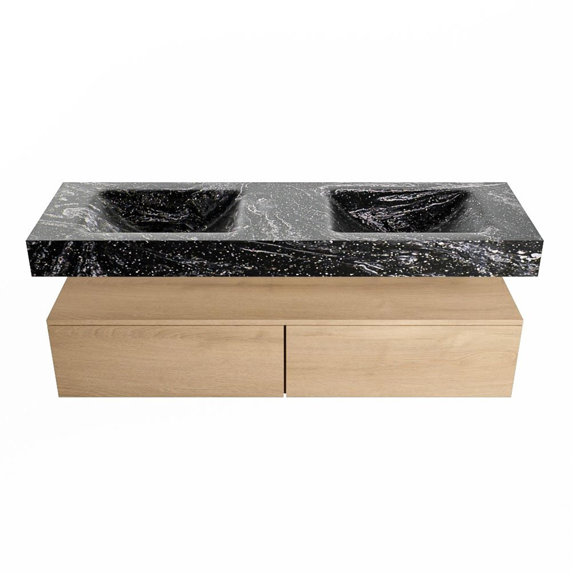 MONDIAZ ALAN - DLUX Badkamermeubelset - 150cm - onderkast - Washed Oak - 2 lades - vrijhangende wastafel - 2 wasbakken - 0 kraangaten - Lava