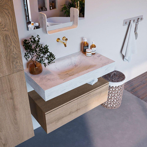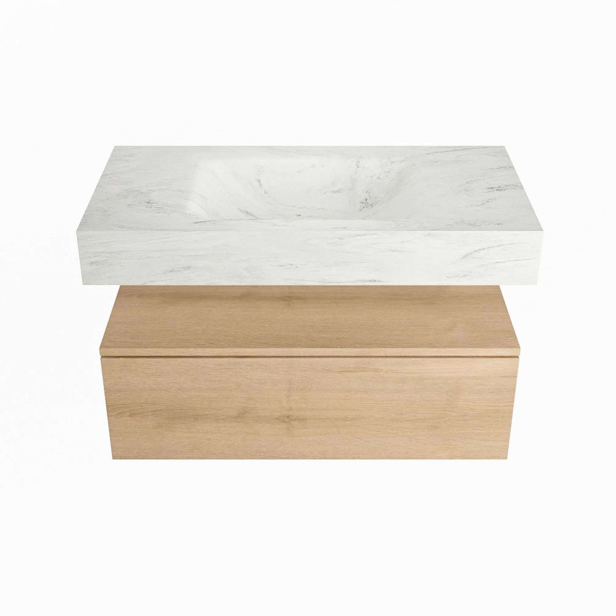 MONDIAZ ALAN - DLUX Badkamermeubelset - 90cm - onderkast - Washed Oak - 1 lade - vrijhangende wastafel - wasbak midden - 0 kraangaten - Opalo