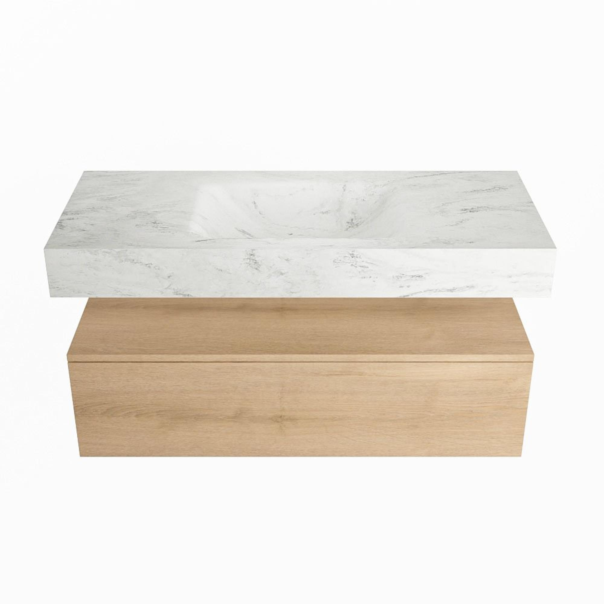 MONDIAZ ALAN - DLUX Badkamermeubelset - 110cm - onderkast - Washed Oak - 1 lade - vrijhangende wastafel - wasbak midden - 1 kraangat - Opalo
