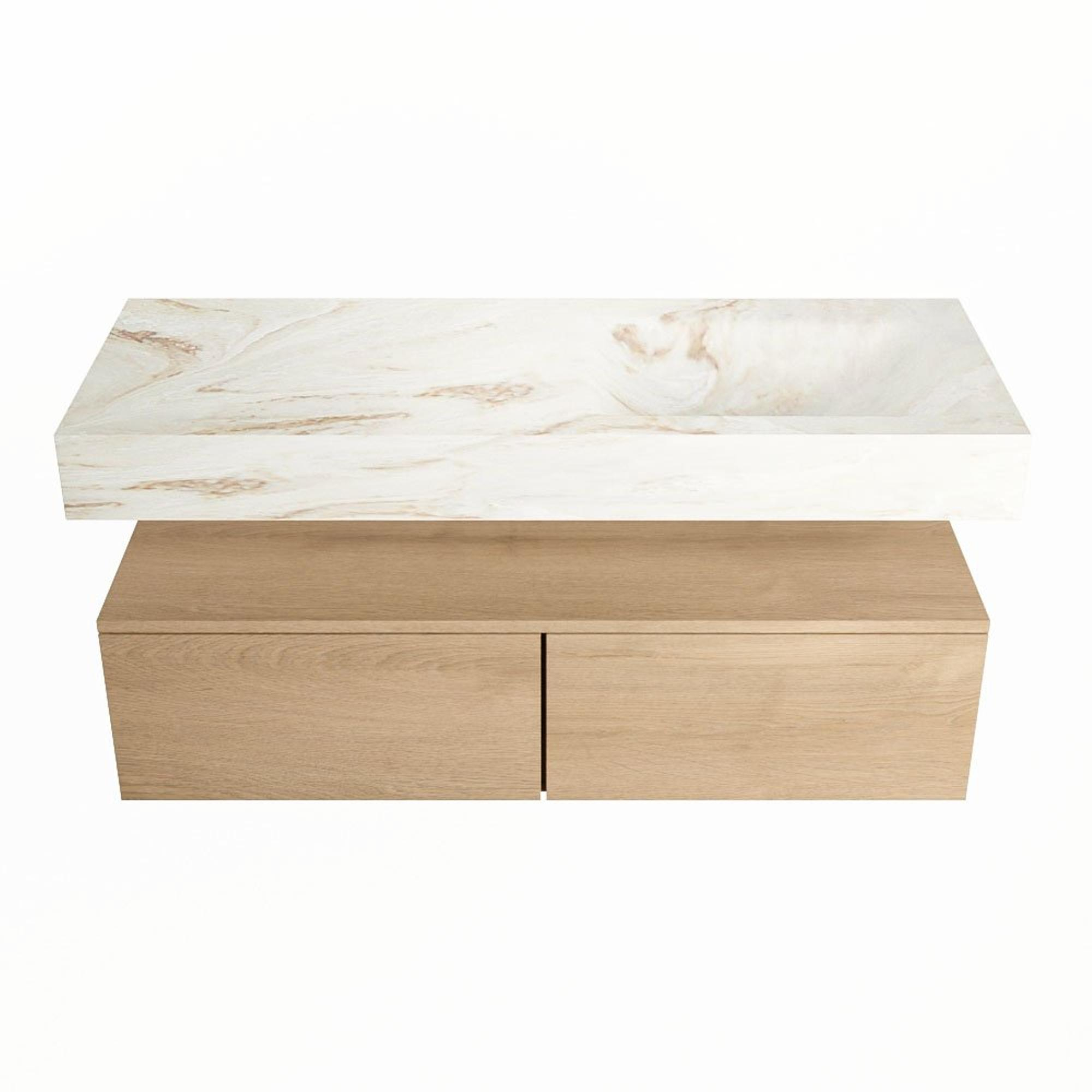 MONDIAZ ALAN - DLUX Badkamermeubelset - 120cm - onderkast - Washed Oak - 2 lades - vrijhangende wastafel - wasbak rechts - 1 kraangat - Frappe