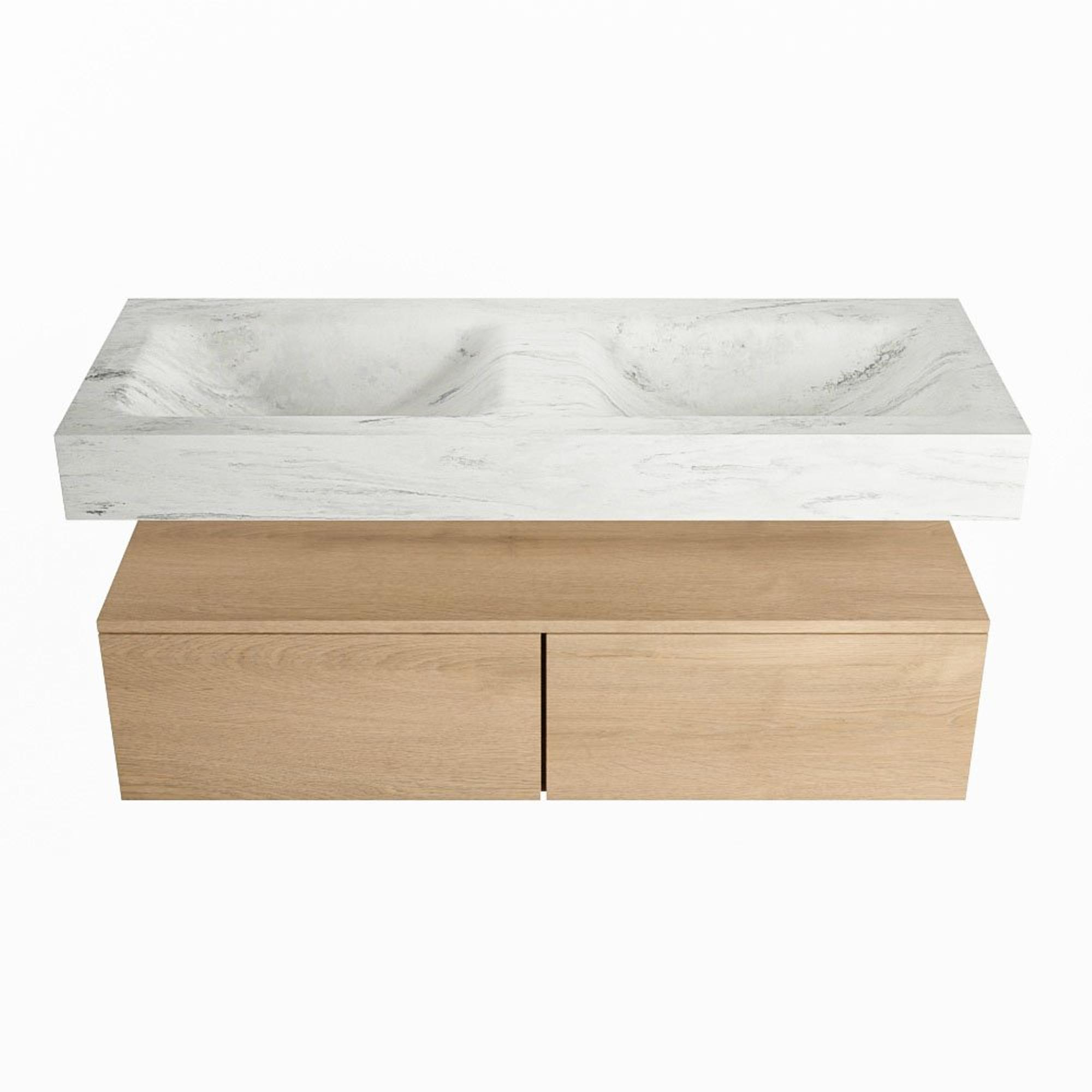 MONDIAZ ALAN - DLUX Badkamermeubelset - 120cm - onderkast - Washed Oak - 2 lades - vrijhangende wastafel - 2 wasbakken - 2 kraangaten - Opalo