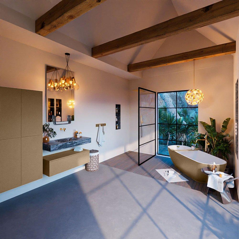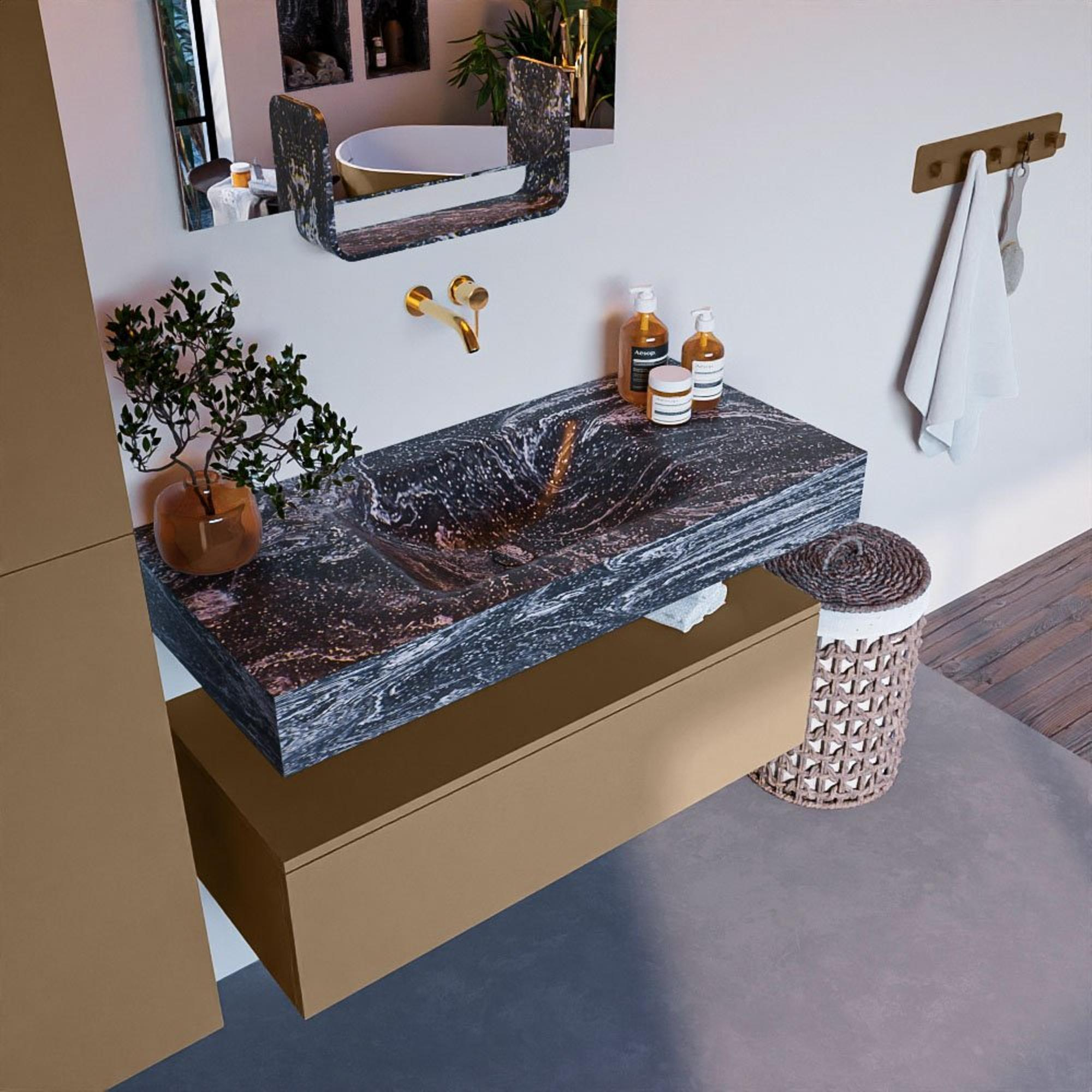 MONDIAZ ALAN - DLUX Badkamermeubelset - 100cm - onderkast - Oro - 1 lade - vrijhangende wastafel - wasbak midden - 0 kraangaten - Lava