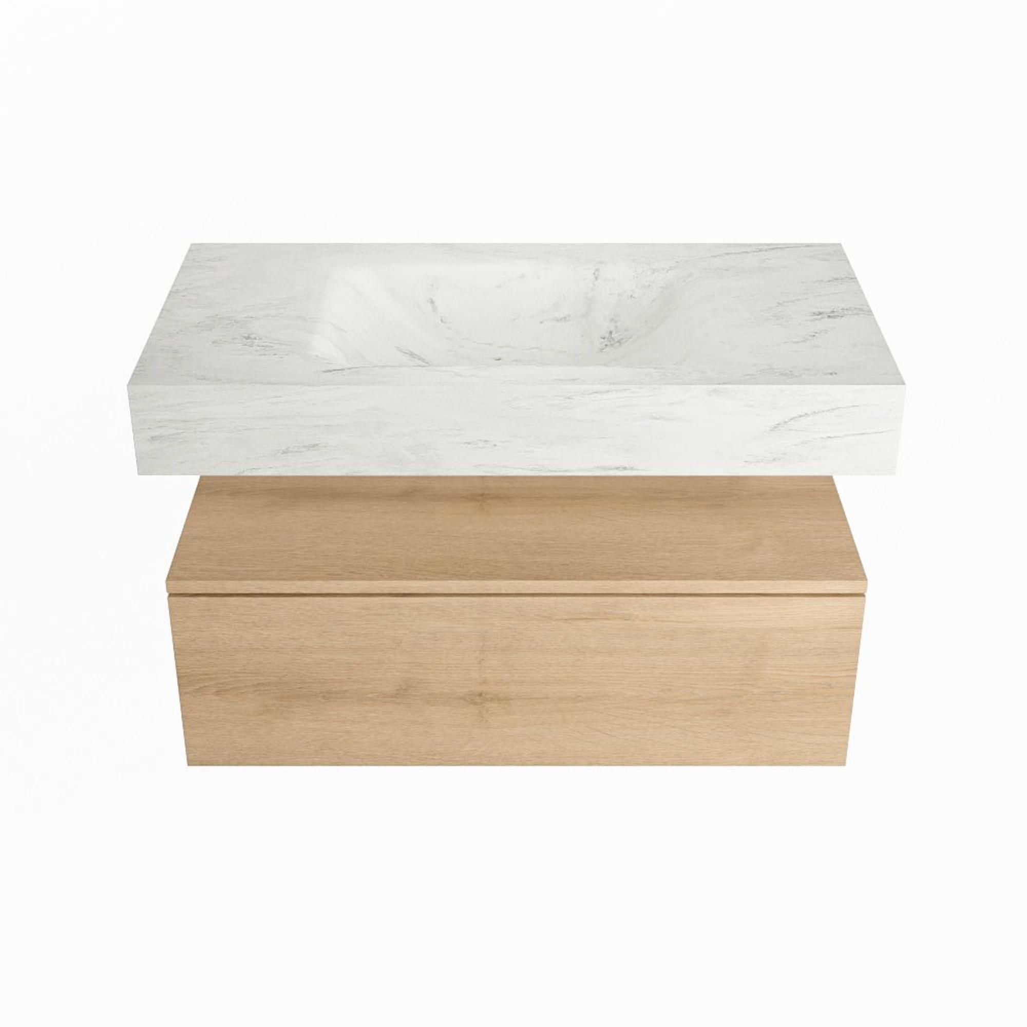 MONDIAZ ALAN - DLUX Badkamermeubelset - 90cm - onderkast - Washed Oak - 1 lade - vrijhangende wastafel - wasbak midden - 1 kraangat - Opalo