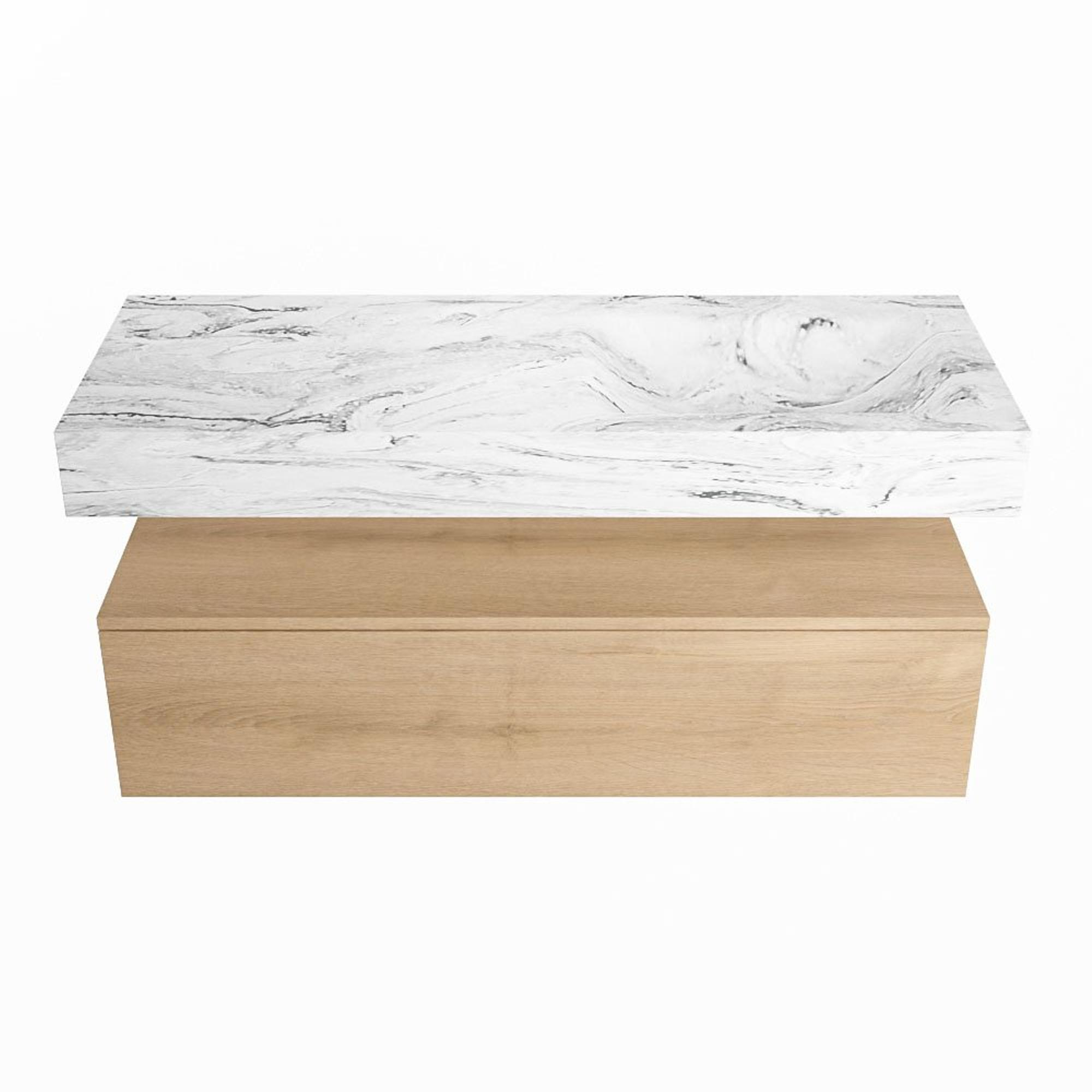 MONDIAZ ALAN - DLUX Badkamermeubelset - 120cm - onderkast - Washed Oak - 1 lade - vrijhangende wastafel - wasbak rechts - 1 kraangat - Glace