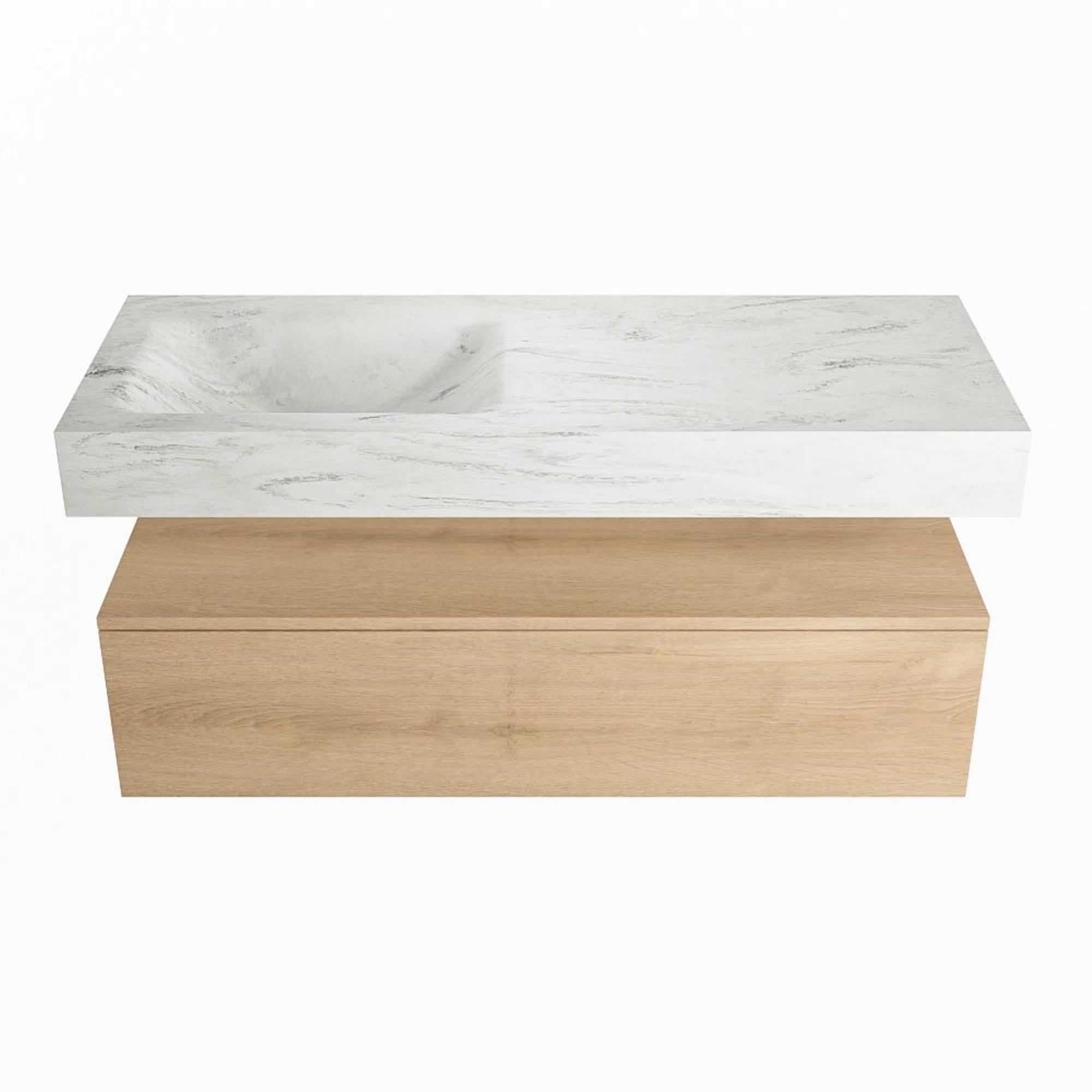 MONDIAZ ALAN - DLUX Badkamermeubelset - 120cm - onderkast - Washed Oak - 1 lade - vrijhangende wastafel - wasbak links - 0 kraangaten - Opalo