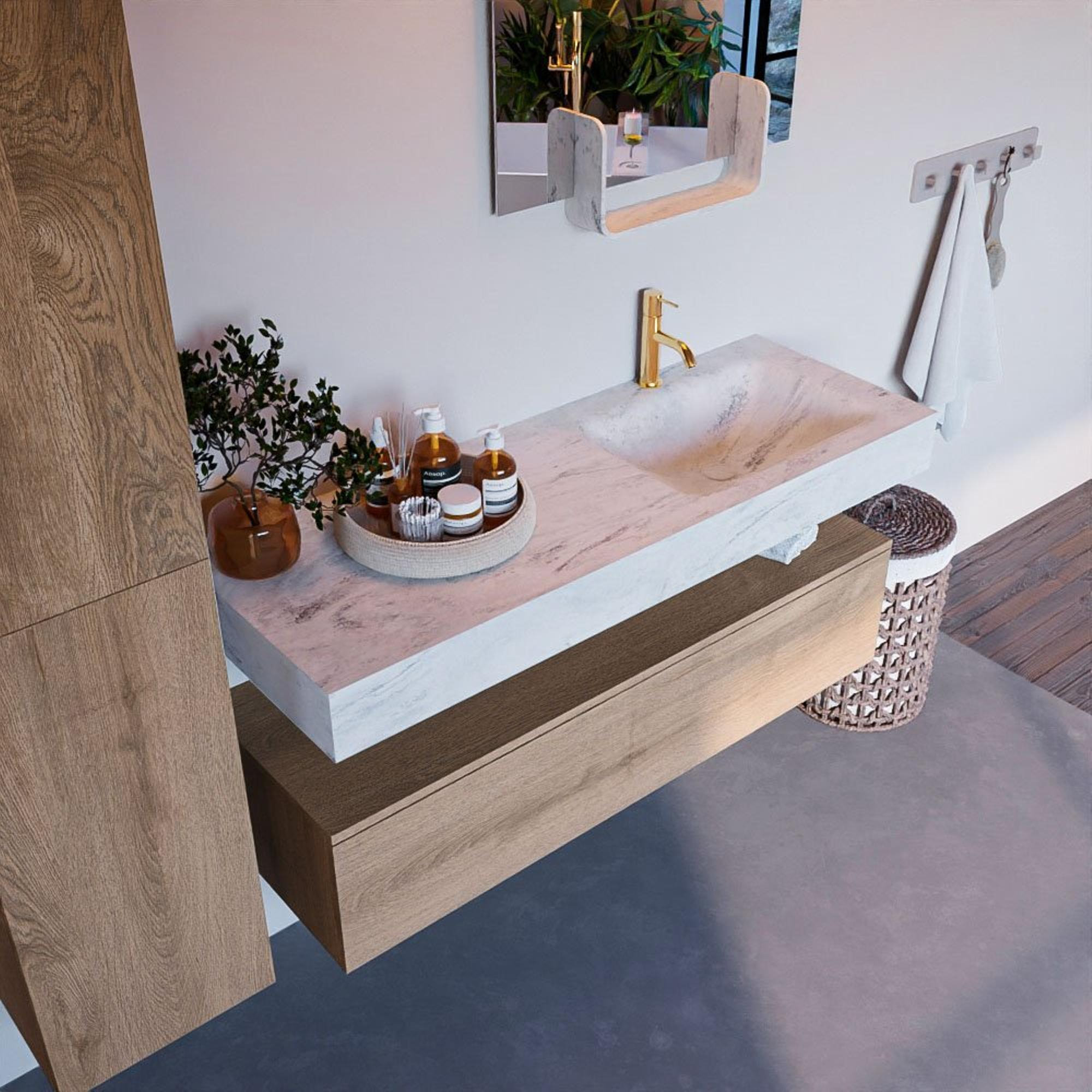 MONDIAZ ALAN - DLUX Badkamermeubelset - 130cm - onderkast - Washed Oak - 1 lade - vrijhangende wastafel - wasbak rechts - 1 kraangat - Opalo