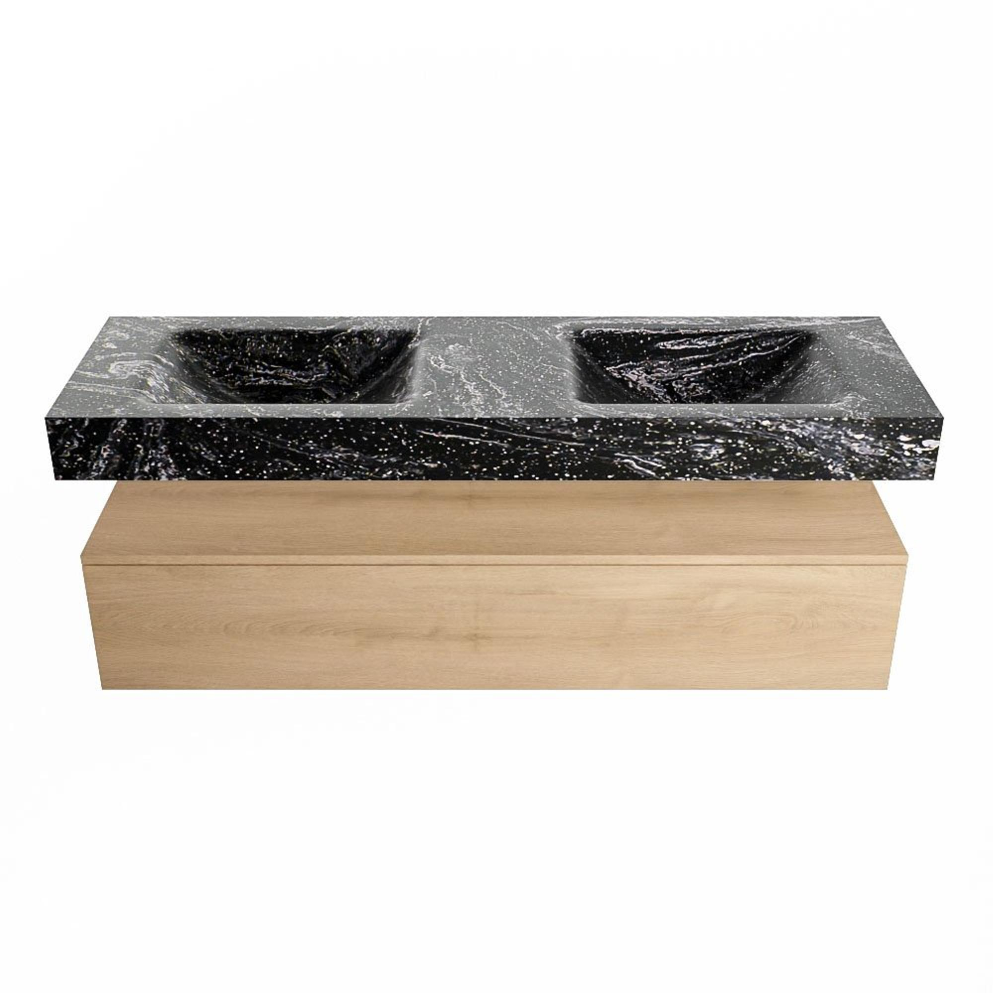 MONDIAZ ALAN - DLUX Badkamermeubelset - 150cm - onderkast - Washed Oak - 1 lade - vrijhangende wastafel - 2 wasbakken - 2 kraangaten - Lava