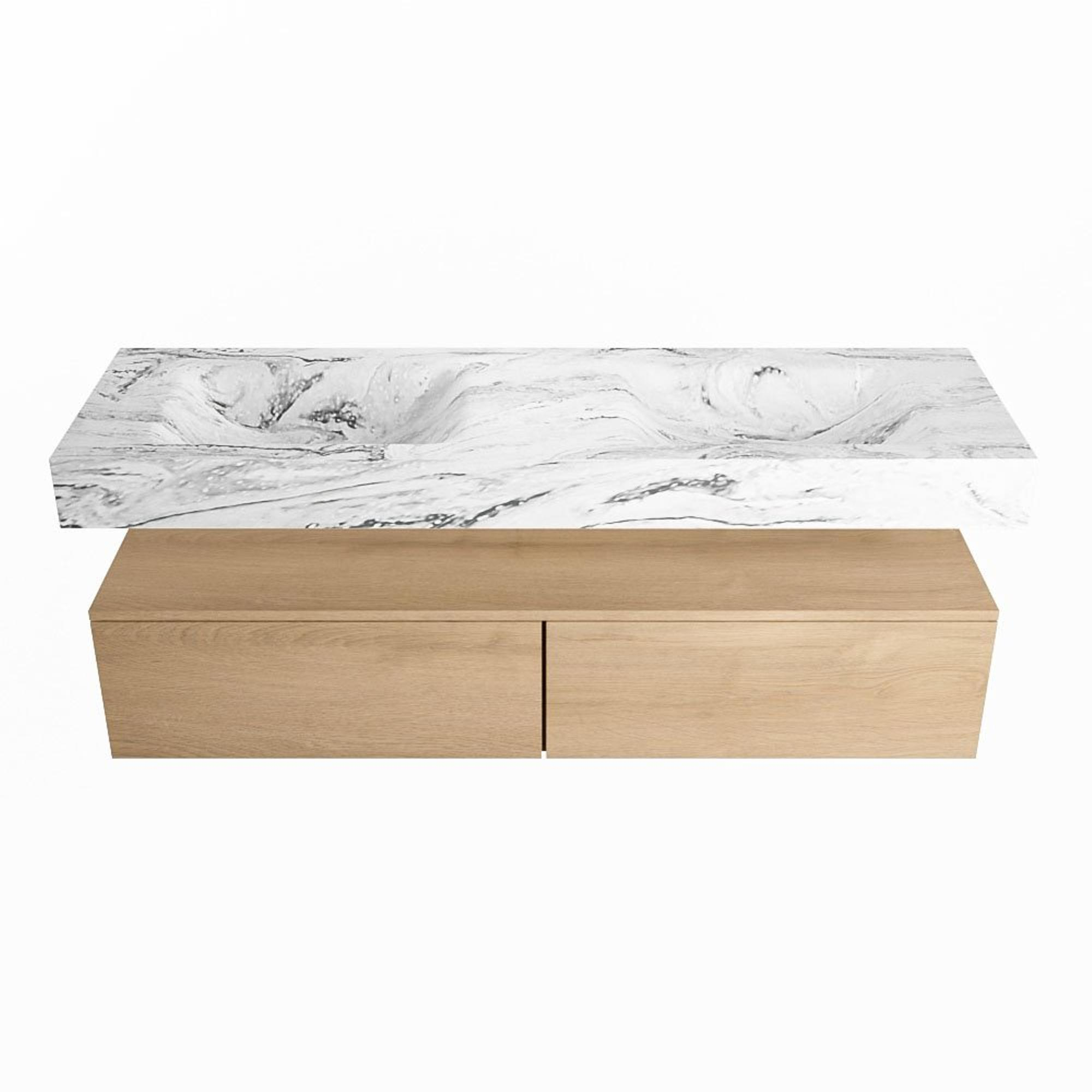 MONDIAZ ALAN - DLUX Badkamermeubelset - 150cm - onderkast - Washed Oak - 2 lades - vrijhangende wastafel - 2 wasbakken - 2 kraangaten - Glace