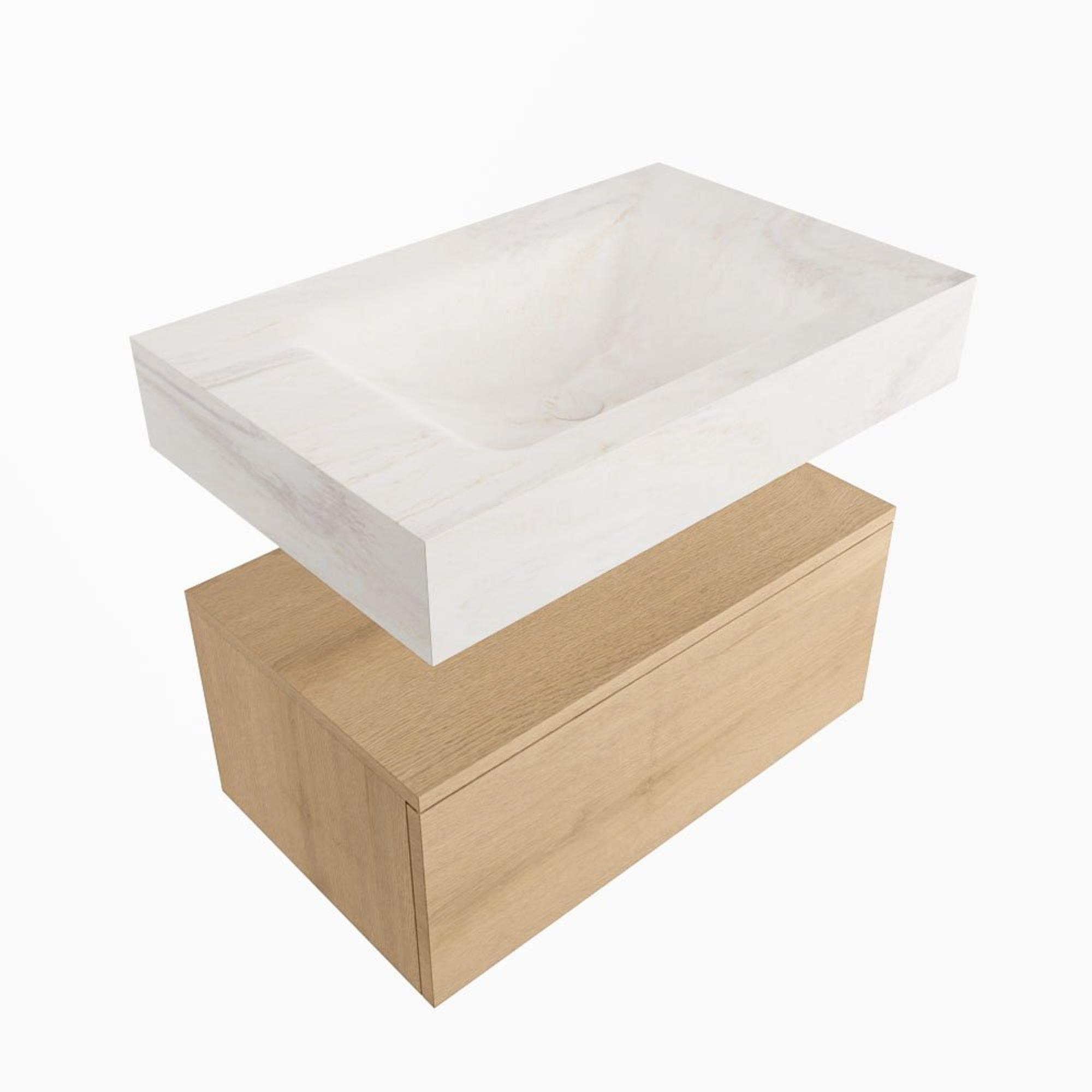 MONDIAZ ALAN - DLUX Badkamermeubelset - 70cm - onderkast - Washed Oak - 1 lade - vrijhangende wastafel - wasbak midden - 0 kraangaten - Ostra