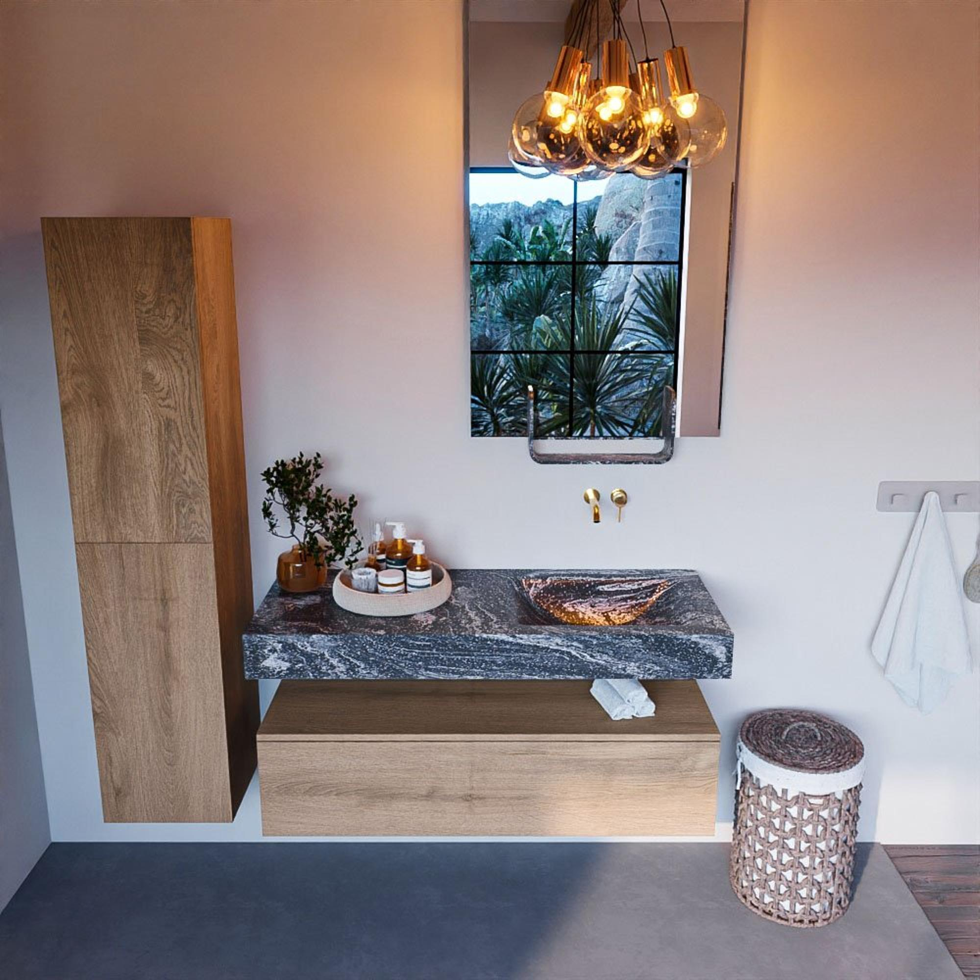 MONDIAZ ALAN - DLUX Badkamermeubelset - 120cm - onderkast - Washed Oak - 1 lade - vrijhangende wastafel - wasbak rechts - 0 kraangaten - Lava