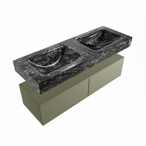 MONDIAZ ALAN - DLUX Badkamermeubelset - 130cm - onderkast - Army - 2 lades - vrijhangende wastafel - 2 wasbakken - 2 kraangaten - Lava