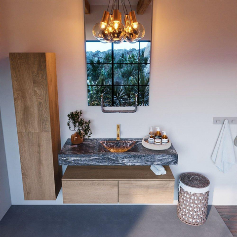 MONDIAZ ALAN - DLUX Badkamermeubelset - 120cm - onderkast - Washed Oak - 2 lades - vrijhangende wastafel - wasbak midden - 1 kraangat - Lava