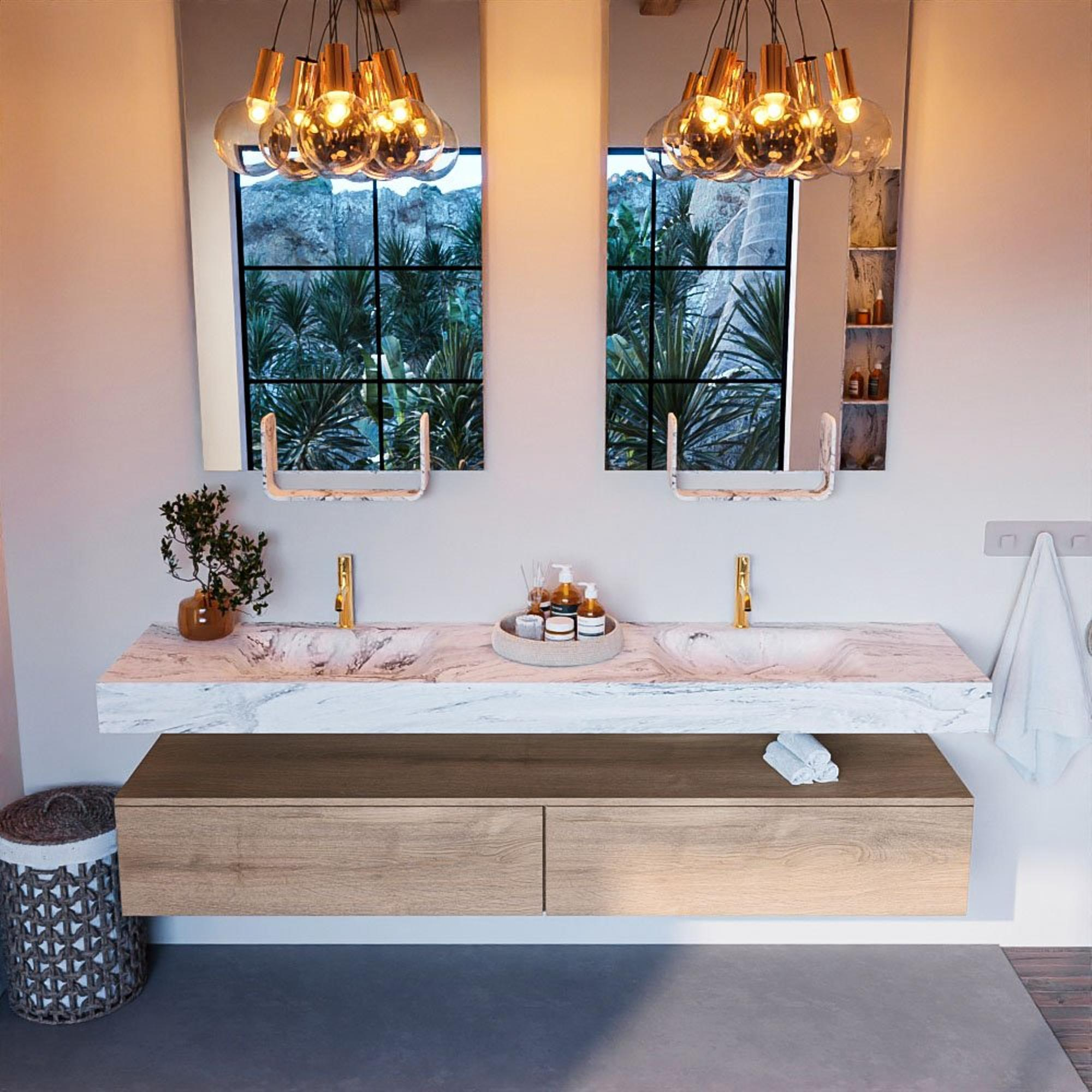 - Vrijhangende wastafel met 2 wasbakken