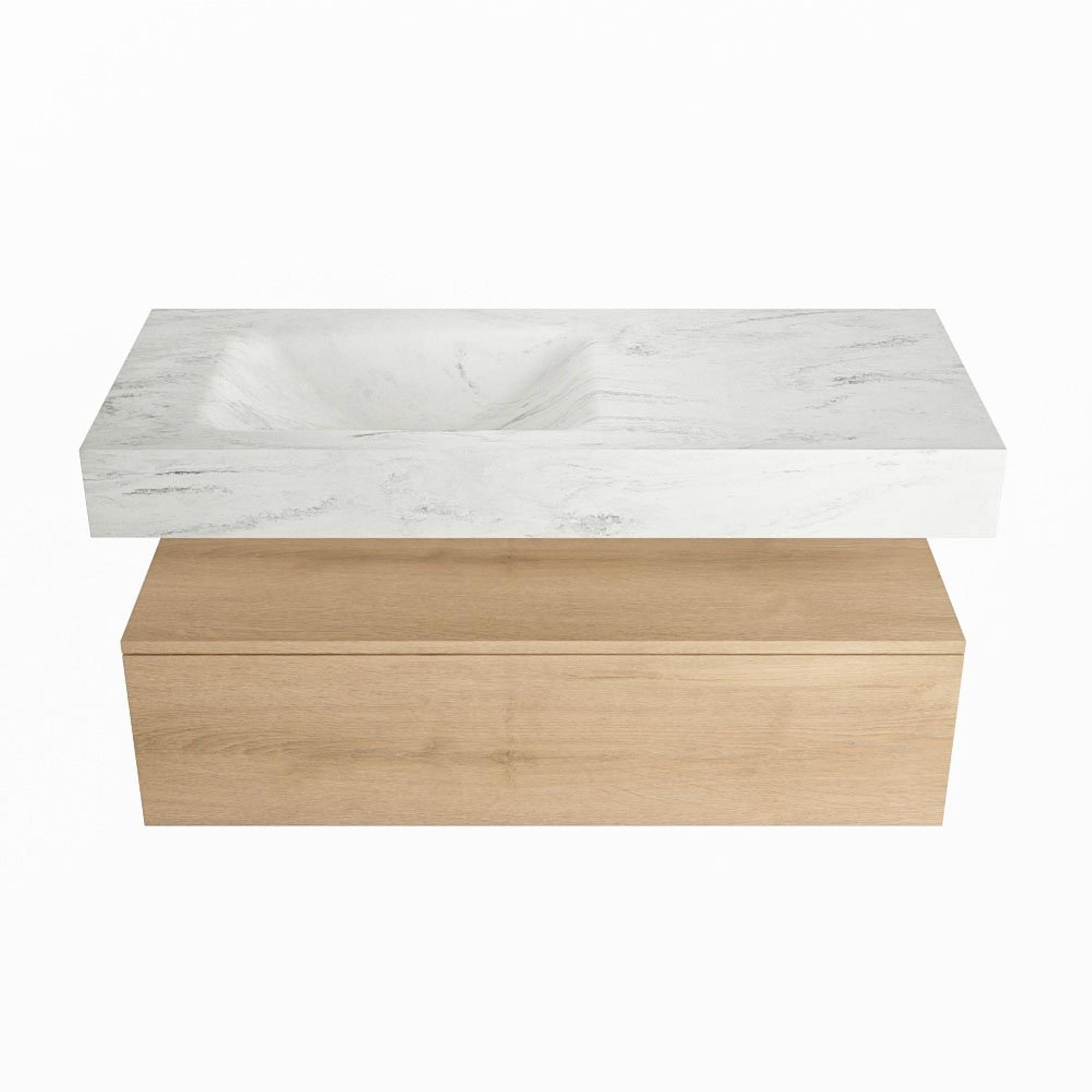 MONDIAZ ALAN - DLUX Badkamermeubelset - 110cm - onderkast - Washed Oak - 1 lade - vrijhangende wastafel - wasbak links - 1 kraangat - Opalo
