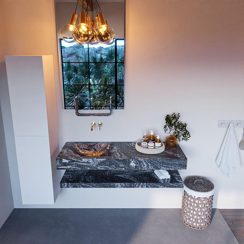 De MONDIAZ ALAN - DLUX Badkamermeubelset is ontworpen met een moderne esthetiek in gedachten. De strakke lijnen en lava-afwerking passen perfect in eigentijdse badkamers. Dit meubelstuk voegt een vleugje moderniteit toe aan elke ruimte, terwijl het tegelijkertijd praktisch en functioneel blijft.