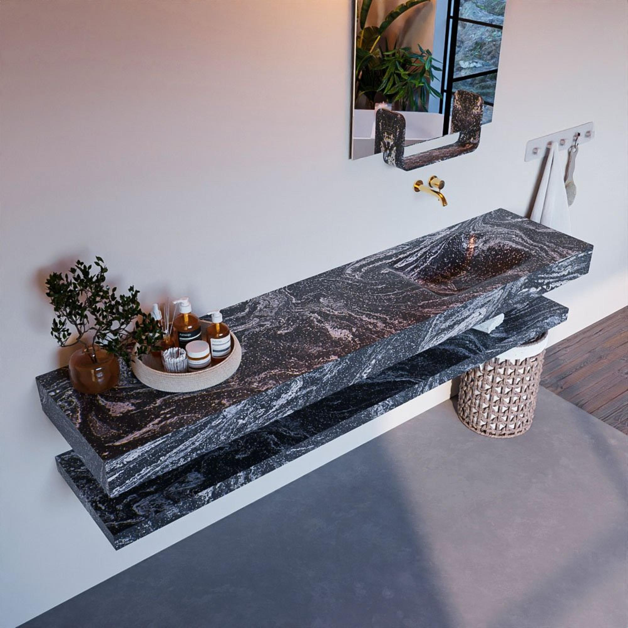 MONDIAZ ALAN - DLUX Badkamermeubelset - 200cm - planchet - Lava - vrijhangende wastafel - wasbak rechts - 0 kraangaten - Lava