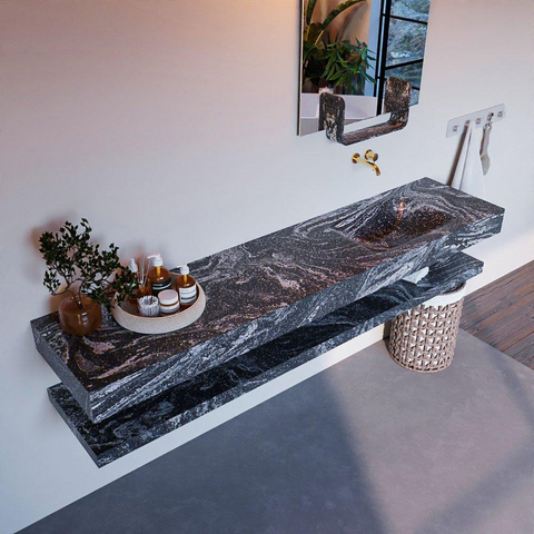 Naast zijn esthetische waarde biedt dit badkamermeubelset ook luxe en functionaliteit. Met een lengte van 200cm is er voldoende ruimte voor het opbergen van badkamerbenodigdheden. Het planchet zorgt voor extra opbergruimte en maakt het gemakkelijk om accessoires binnen handbereik te houden. De vrijhangende wastafel geeft een ruimtelijk gevoel aan de badkamer en maakt het schoonmaken onder de wastafel eenvoudig en efficiënt.