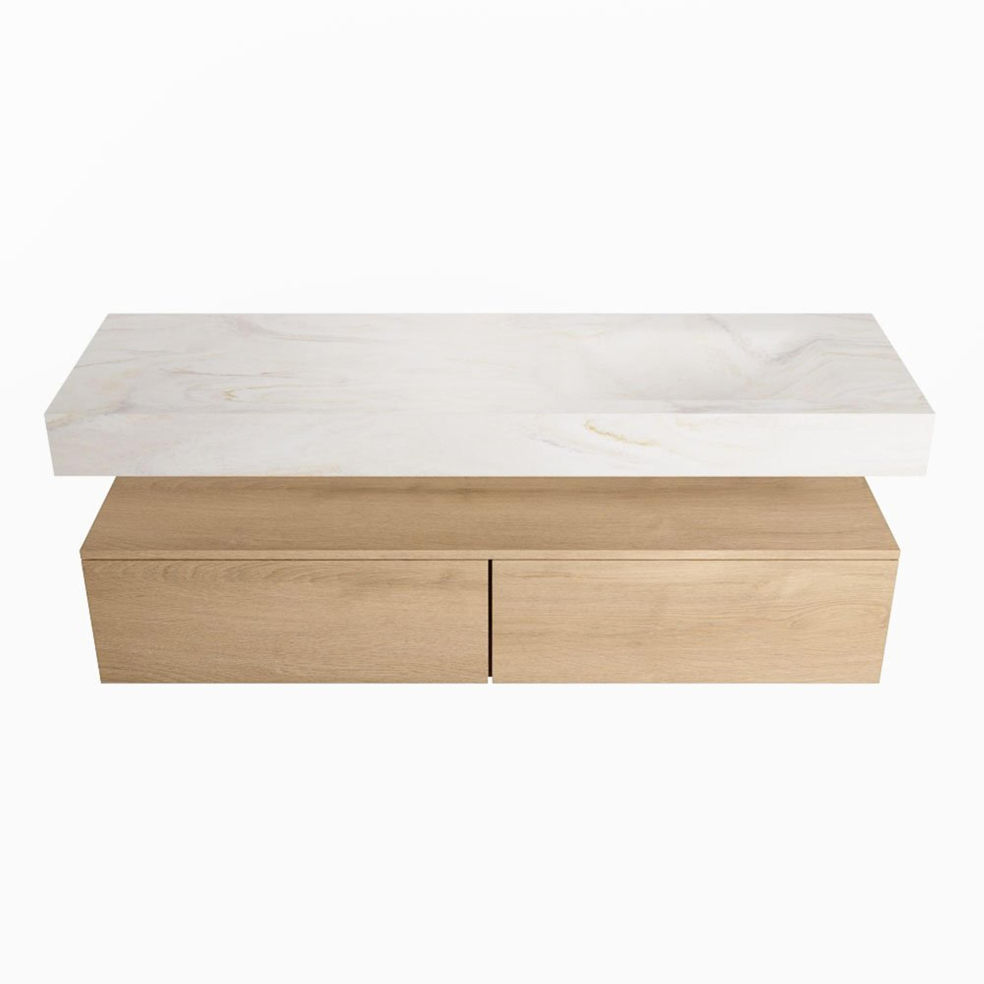 MONDIAZ ALAN - DLUX Badkamermeubelset - 150cm - onderkast - Washed Oak - 2 lades - vrijhangende wastafel - wasbak rechts - 1 kraangat - Ostra