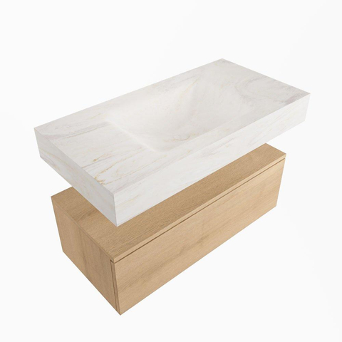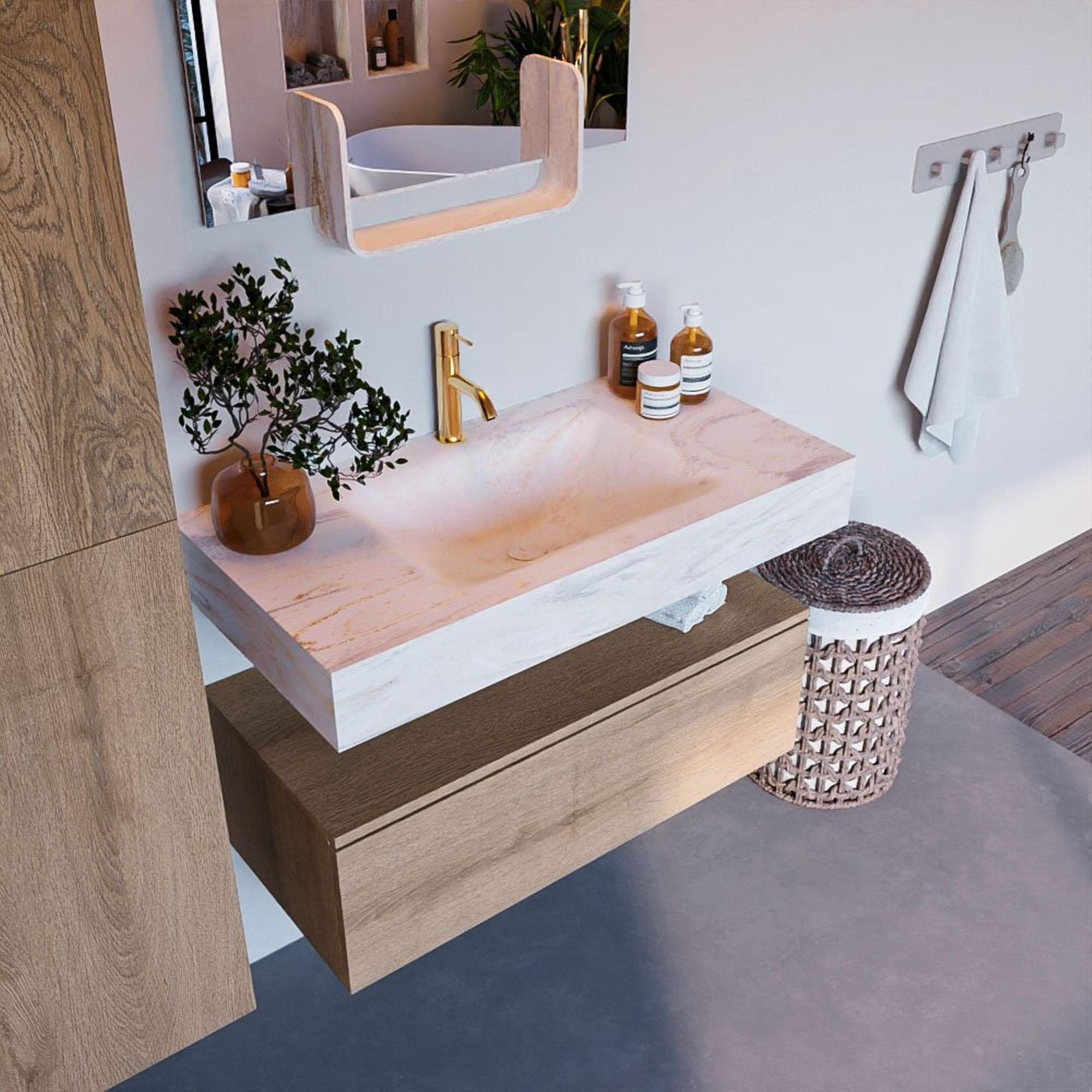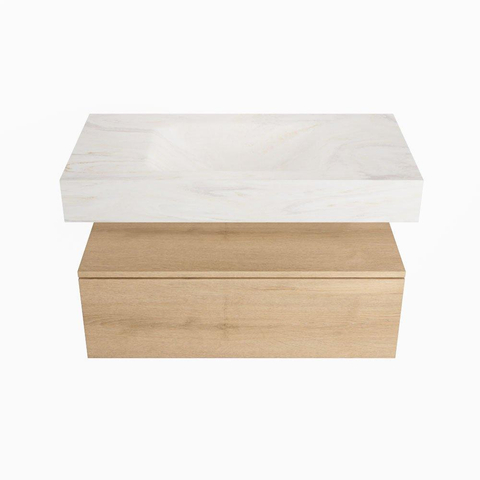 MONDIAZ ALAN - DLUX Badkamermeubelset - 90cm - onderkast - Washed Oak - 1 lade - vrijhangende wastafel - wasbak midden - 1 kraangat - Ostra