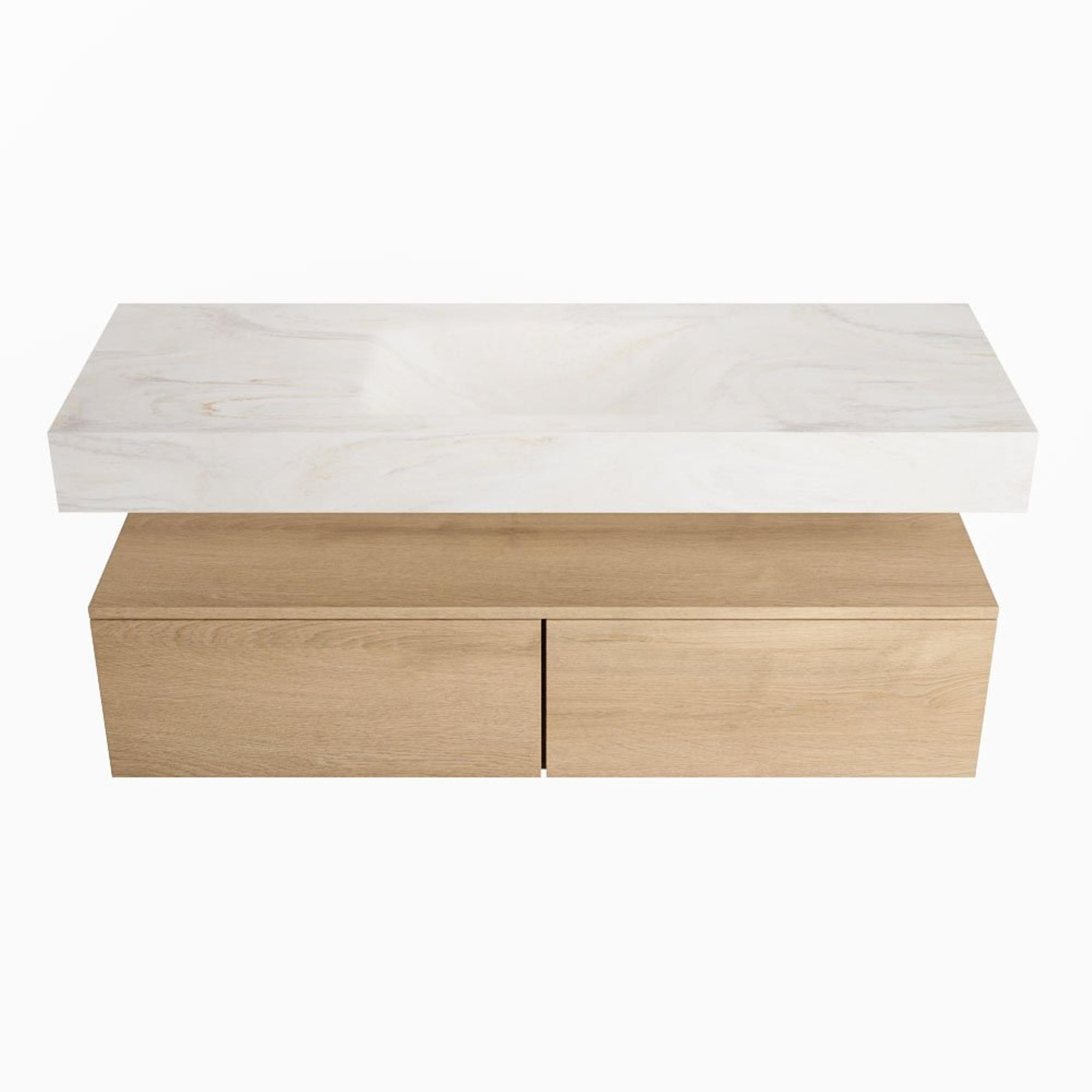 MONDIAZ ALAN - DLUX Badkamermeubelset - 130cm - onderkast - Washed Oak - 2 lades - vrijhangende wastafel - wasbak midden - 0 kraangaten - Ostra