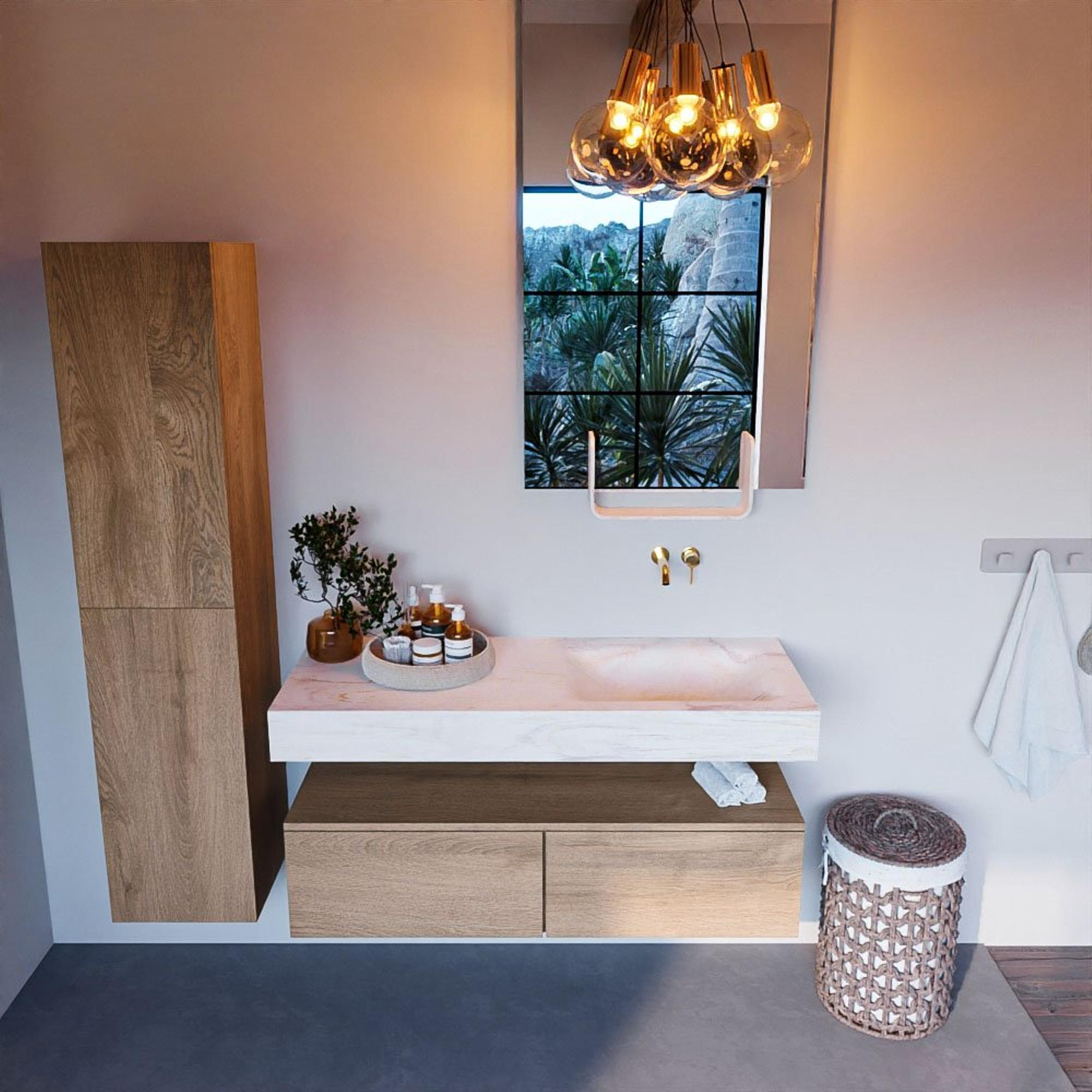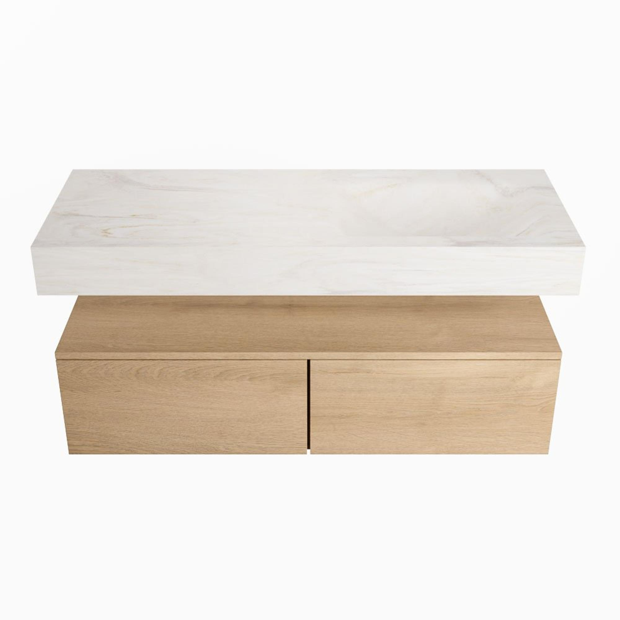 MONDIAZ ALAN - DLUX Badkamermeubelset - 120cm - onderkast - Washed Oak - 2 lades - vrijhangende wastafel - wasbak rechts - 0 kraangaten - Ostra