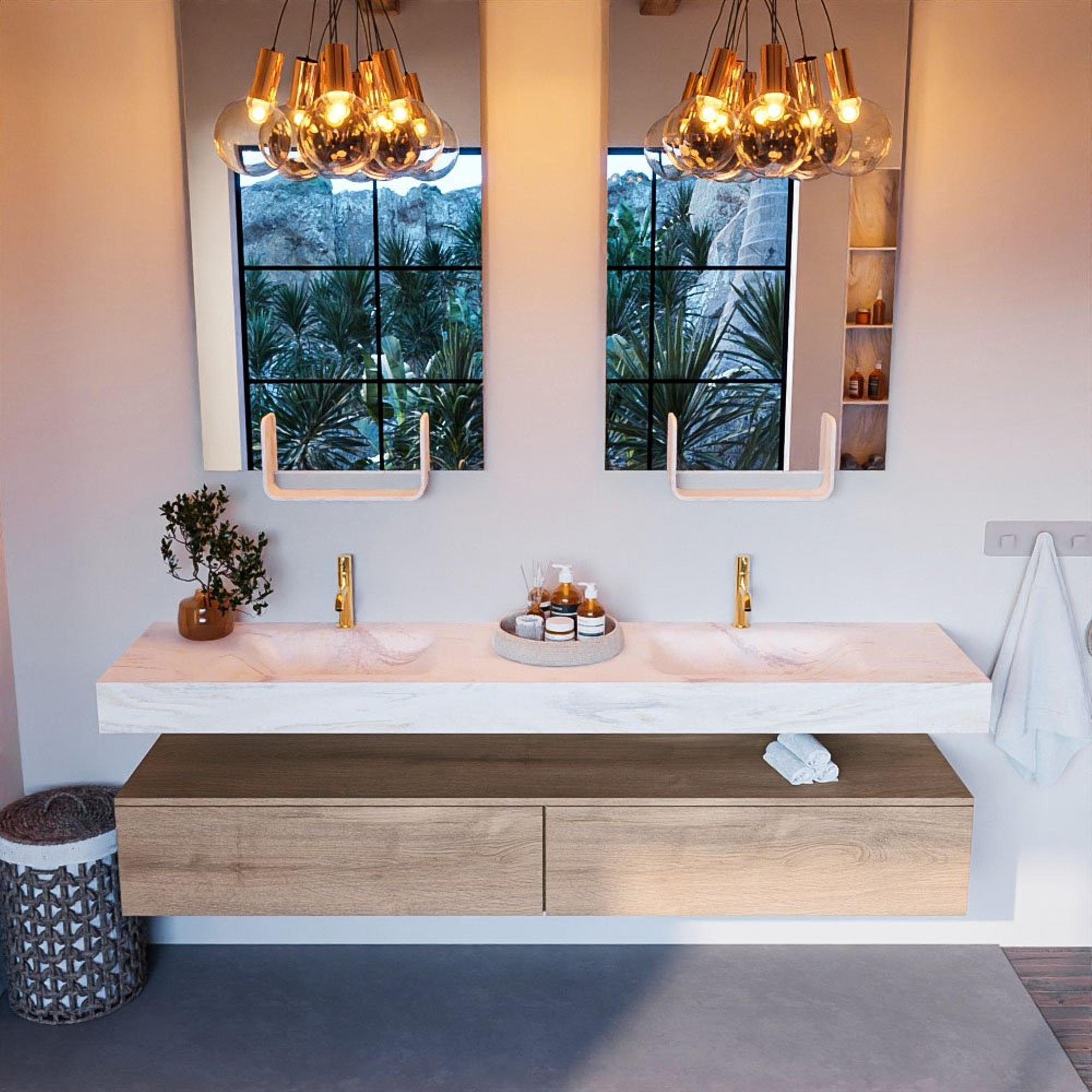 MONDIAZ ALAN - DLUX Badkamermeubelset - 200cm - onderkast - Washed Oak - 2 lades - vrijhangende wastafel - 2 wasbakken - 2 kraangaten - Ostra