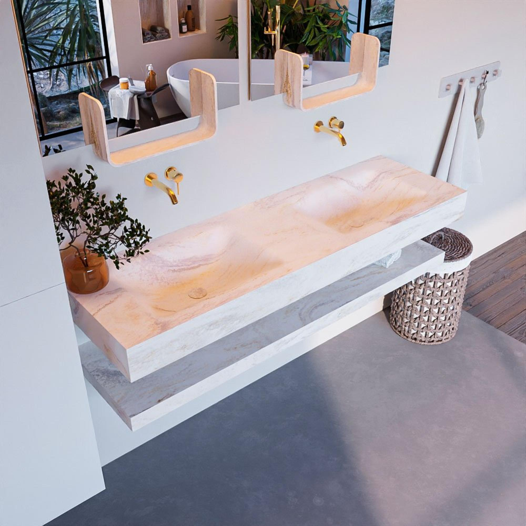 - Vrijhangende wastafel met 2 wasbakken