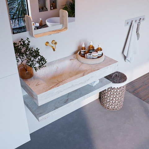 MONDIAZ ALAN - DLUX Badkamermeubelset - 100cm - planchet - Frappe - vrijhangende wastafel - wasbak links - 0 kraangaten - Frappe
