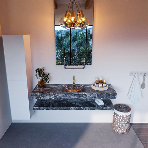 MONDIAZ ALAN - DLUX Badkamermeubelset - 150cm - planchet - Lava - vrijhangende wastafel - wasbak midden - 1 kraangat - Lava
