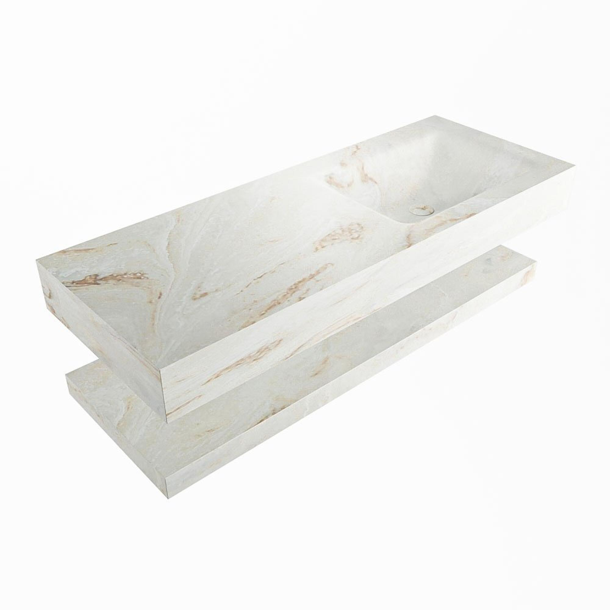 - Vrijhangende wastafel met wasbak rechts