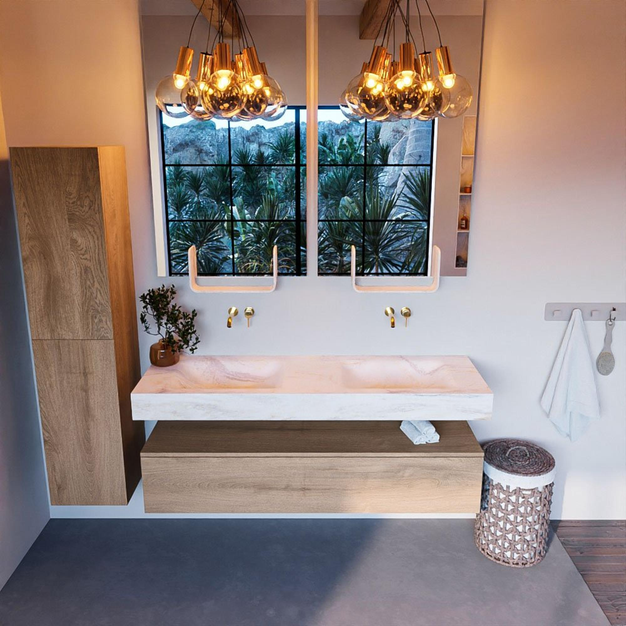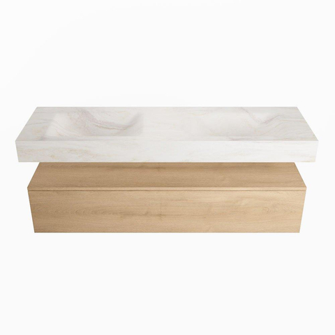 MONDIAZ ALAN - DLUX Badkamermeubelset - 150cm - onderkast - Washed Oak - 1 lade - vrijhangende wastafel - 2 wasbakken - 0 kraangaten - Ostra