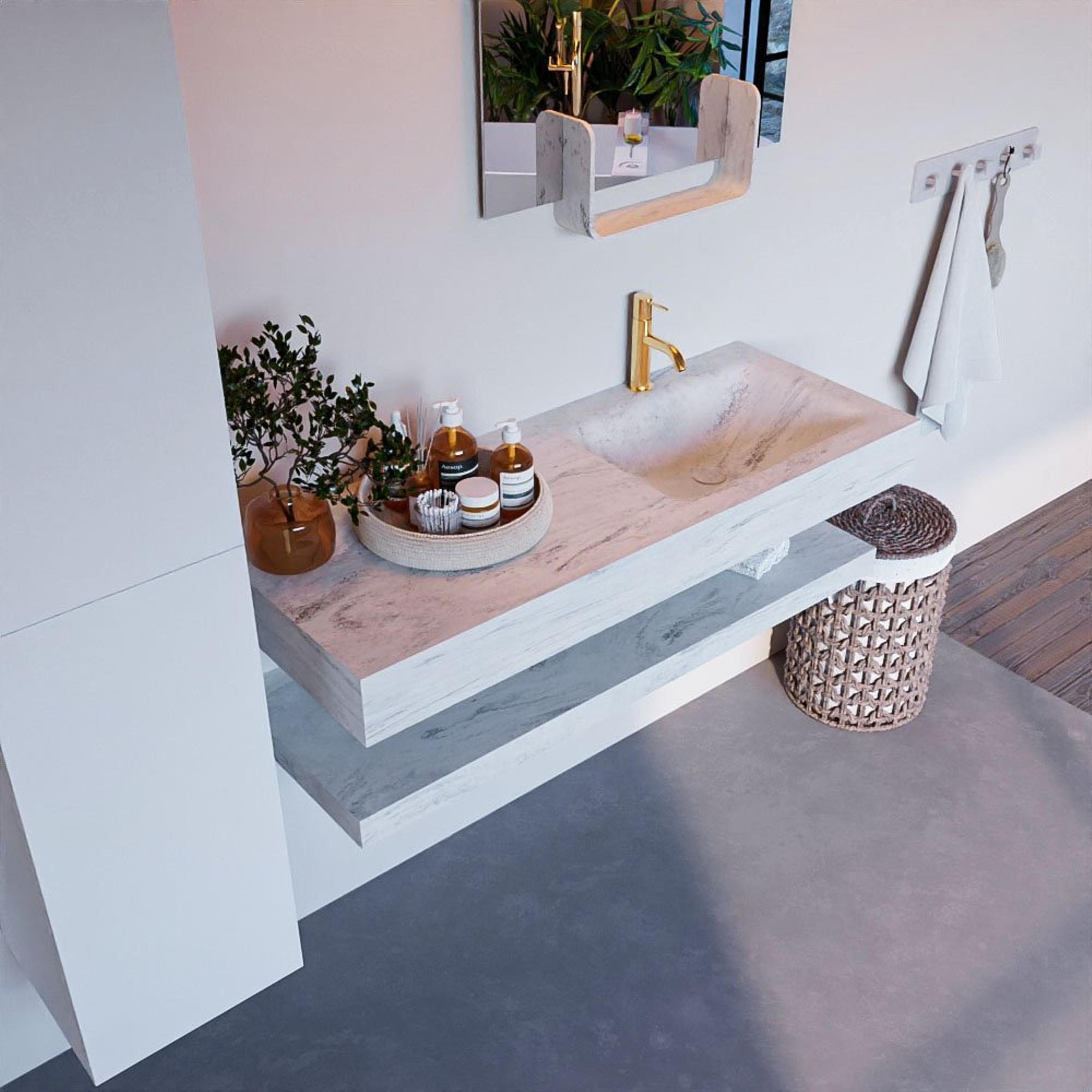 MONDIAZ ALAN - DLUX Badkamermeubelset - 120cm - planchet - Opalo - vrijhangende wastafel - wasbak rechts - 1 kraangat - Opalo