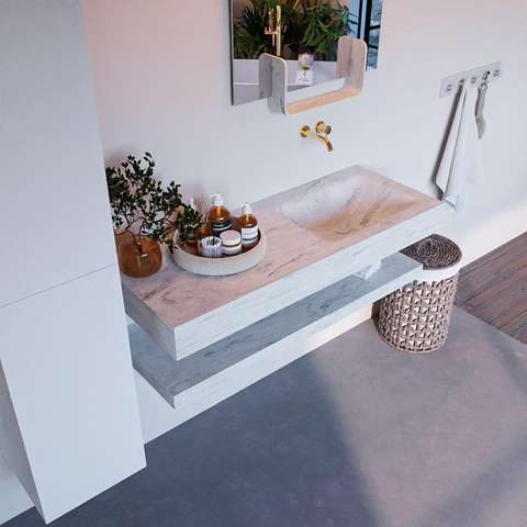 MONDIAZ ALAN - DLUX Badkamermeubelset - 120cm - planchet - Opalo - vrijhangende wastafel - wasbak rechts - 0 kraangaten - Opalo