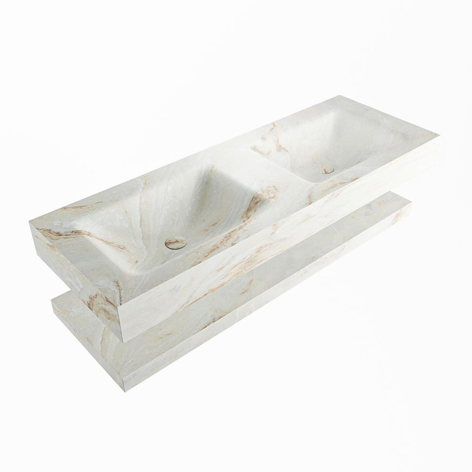 MONDIAZ ALAN - DLUX Badkamermeubelset - 130cm - planchet - Frappe - vrijhangende wastafel - 2 wasbakken - 2 kraangaten - Frappe