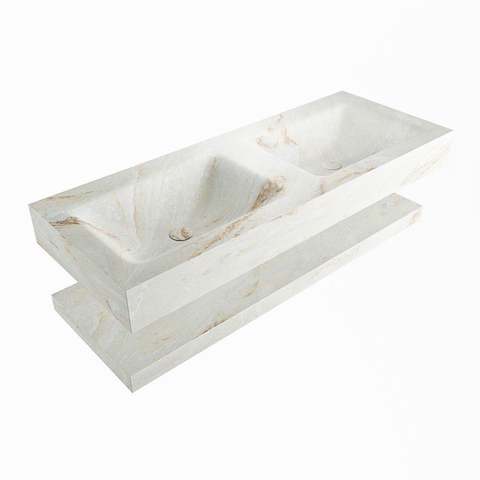 MONDIAZ ALAN - DLUX Badkamermeubelset - 120cm - planchet - Frappe - vrijhangende wastafel - 2 wasbakken - 2 kraangaten - Frappe