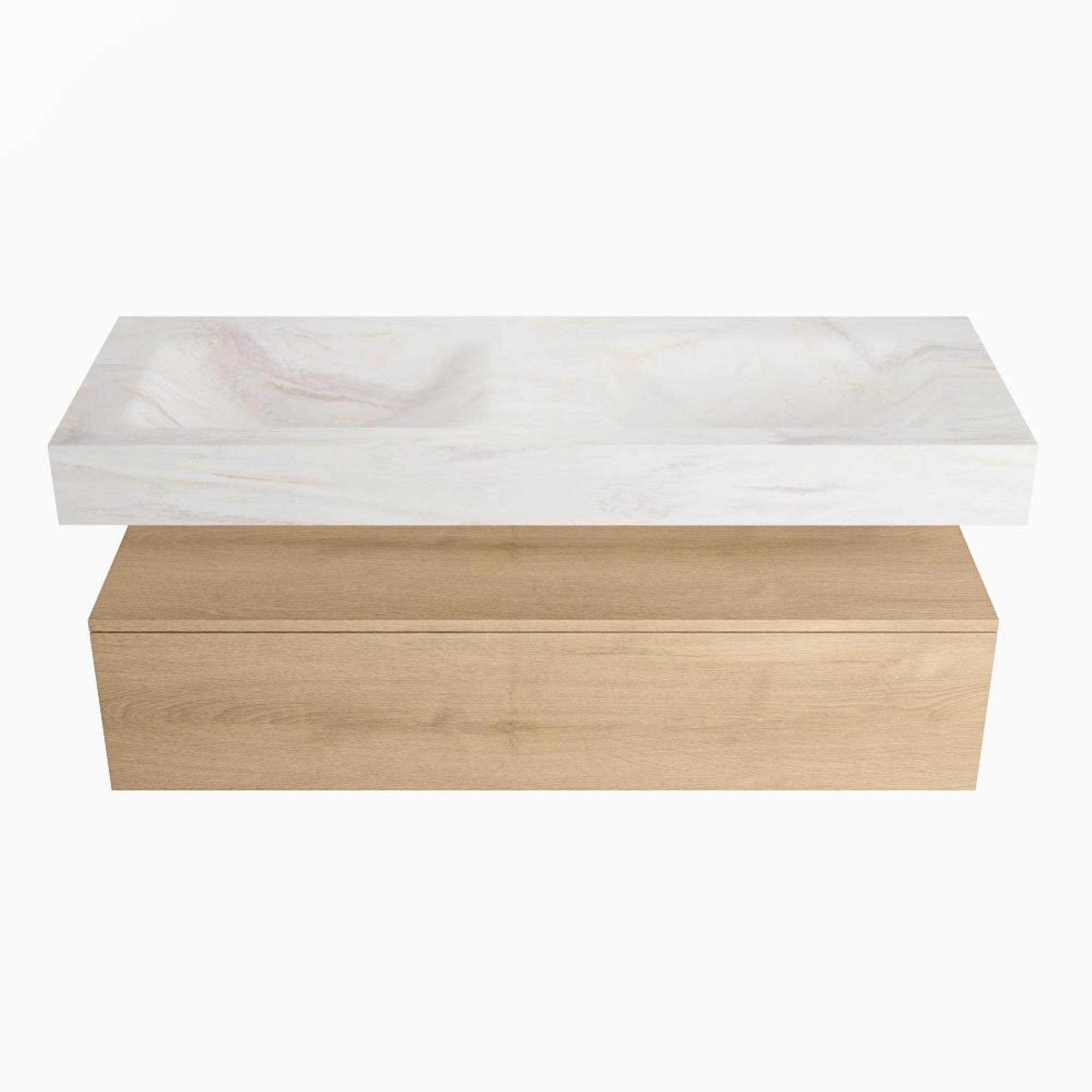 MONDIAZ ALAN - DLUX Badkamermeubelset - 130cm - onderkast - Washed Oak - 1 lade - vrijhangende wastafel - 2 wasbakken - 2 kraangaten - Ostra