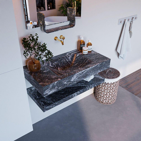 MONDIAZ ALAN - DLUX Badkamermeubelset - 90cm - planchet - Lava - vrijhangende wastafel - wasbak midden - 0 kraangaten - Lava