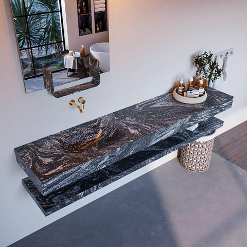 De lava-kleur van dit badkamermeubelset straalt luxe uit. Het voegt warmte en diepte toe aan de ruimte, waardoor een uitnodigende sfeer ontstaat. De hoogwaardige materialen en afwerking zorgen ervoor dat dit meubelstuk niet alleen mooi is om naar te kijken, maar ook duurzaam en bestand tegen de dagelijkse uitdagingen van een badkameromgeving.