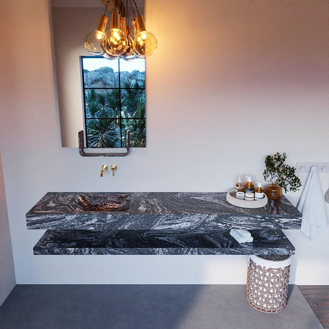 MONDIAZ ALAN - DLUX Badkamermeubelset - 200cm - planchet - Lava - vrijhangende wastafel - wasbak links - 0 kraangaten - Lava