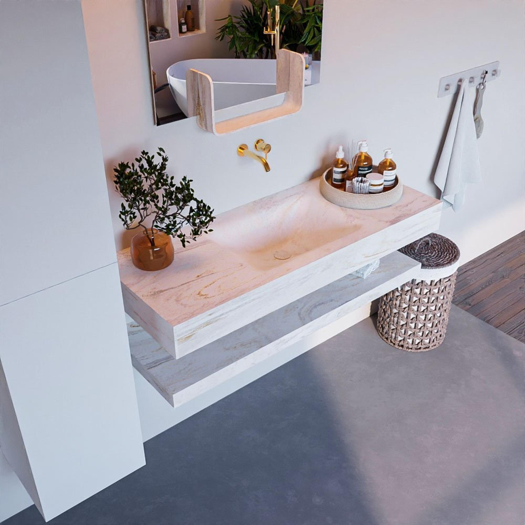 - Vrijhangende wastafel met wasbak in het midden