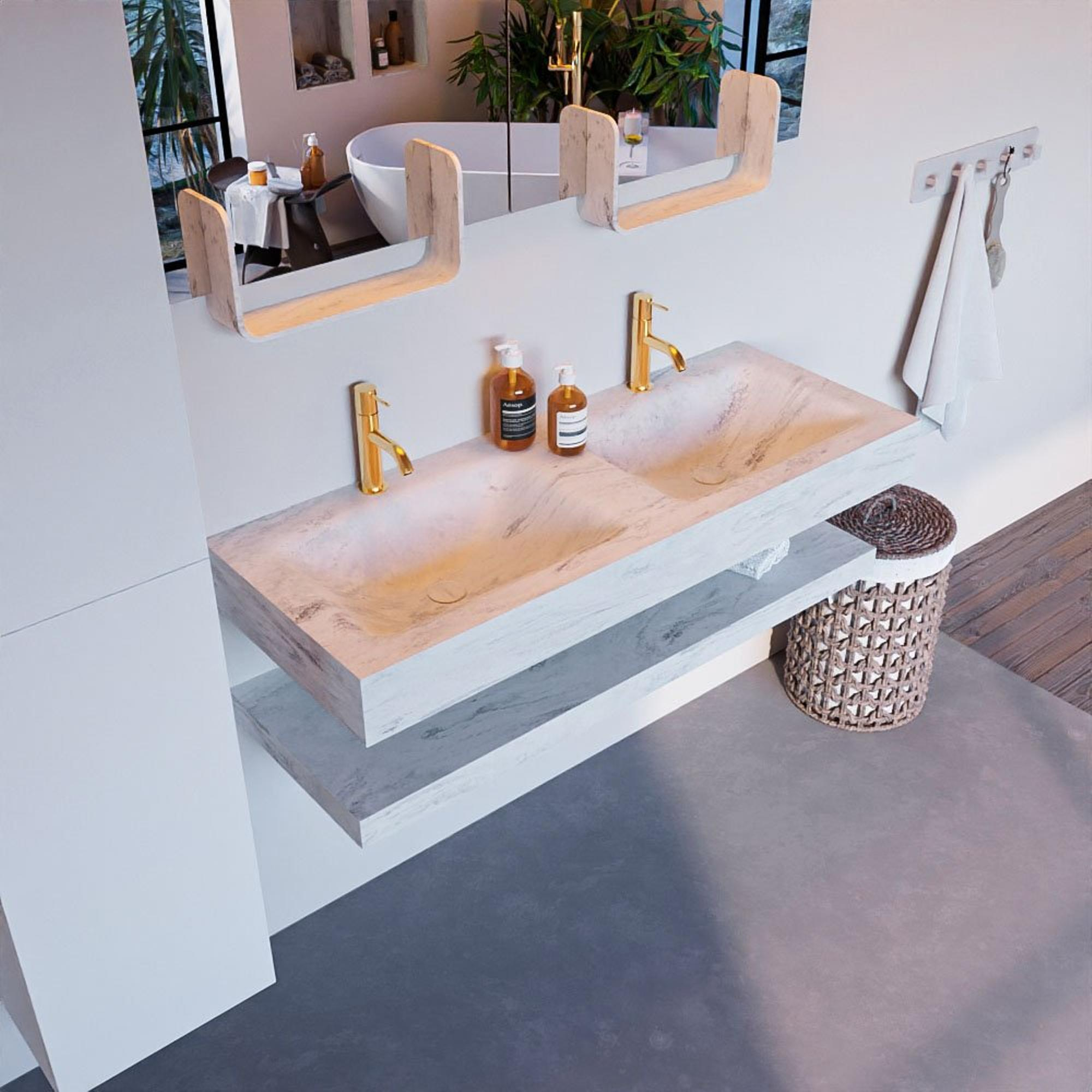 MONDIAZ ALAN - DLUX Badkamermeubelset - 120cm - planchet - Opalo - vrijhangende wastafel - 2 wasbakken - 2 kraangaten - Opalo
