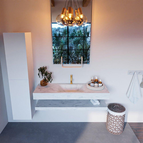 MONDIAZ ALAN - DLUX Badkamermeubelset - 130cm - planchet - Opalo - vrijhangende wastafel - wasbak midden - 1 kraangat - Opalo
