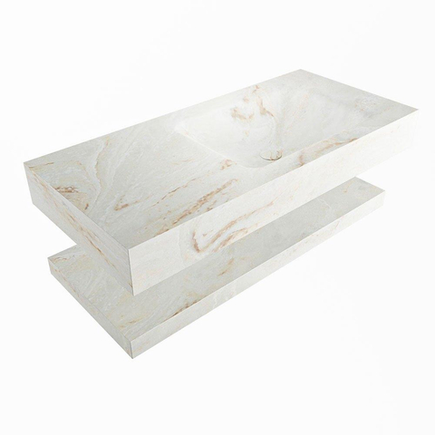 MONDIAZ ALAN - DLUX Badkamermeubelset - 100cm - planchet - Frappe - vrijhangende wastafel - wasbak rechts - 1 kraangat - Frappe